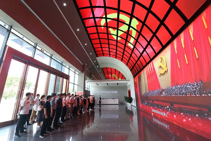 党风廉政教育馆内,同志们在序厅驻足观看了全面从严治党主题教育片《永远在路上》,随后在讲解员的引导下,依次参观了四个展厅,认真学习了廉政典型先进事迹,深刻汲取了违纪违法党员领导干部案例警示教训,现场一幅幅图片、一帧帧影像、一件件案例、一封封忏悔书,给大家带来了强烈的视觉冲击和心灵震撼,接受了一次深刻、直观的警示教育和灵魂洗涤,为全体领导干部上了一堂生动的廉政教育课。党委副书记陈行带领全体党员领导干部在尾厅面向党旗,重温入党誓词,不忘初心、牢记使命。