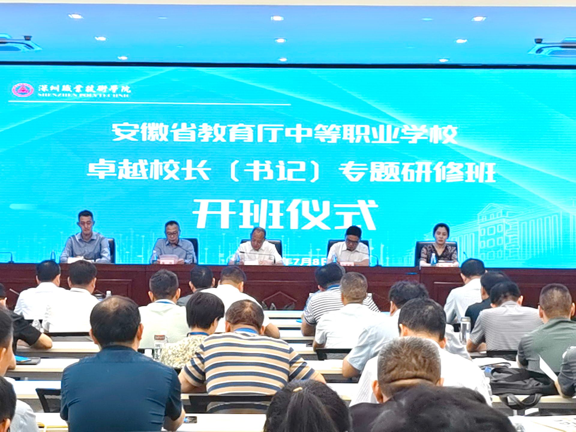 安徽省中职教师素质提高计划国家级项目—卓越校长(书记)专题研修班由深圳职业技术学院承办,来自全省100所中等职业学校的共计101名校长(书记)参加培训,培训内容主要包括专家讲座、现场教学、集体研讨、返岗研修等。本次培训在安徽省中等职业学校教师继续教育中心及深圳职业技术学院的周密安排下,邀请了深圳职业技术学院校级领导、中层干部、行业名师、深圳市属中职学校校长、书记进行专题讲授,授课专题紧密围绕课程思政、三教改革、产学研一体化、数字化转型、“双优校”建设、现代学校治理、中等职业学校发展困境与路径等中等职业教育改革发展的热点与难点问题展开。(撰稿:肖伟 审核:张娴)
