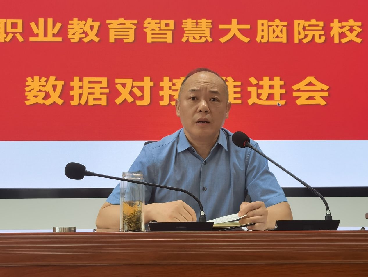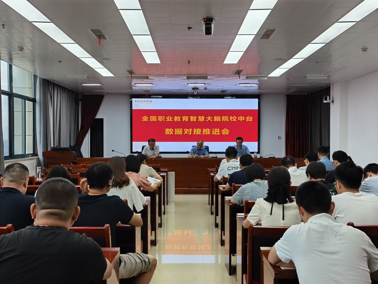 为贯彻落实教育数字化战略?动,提升职业教育数字化?平,进?步推动全国职业院校数字校园建设试点工作,全面推进主题教育走深走实,7?30?上午,学院在综合楼二号会议室召开了全国职业教育智慧?脑院校中台数据对接?作推进会。院党委书记齐建平,党委委员、副院?陈章奇,党委委员、发展规划与质量管理处处长、管理学院院长朱小龙及相关部?主要负责?和数据填报?员参加了会议。