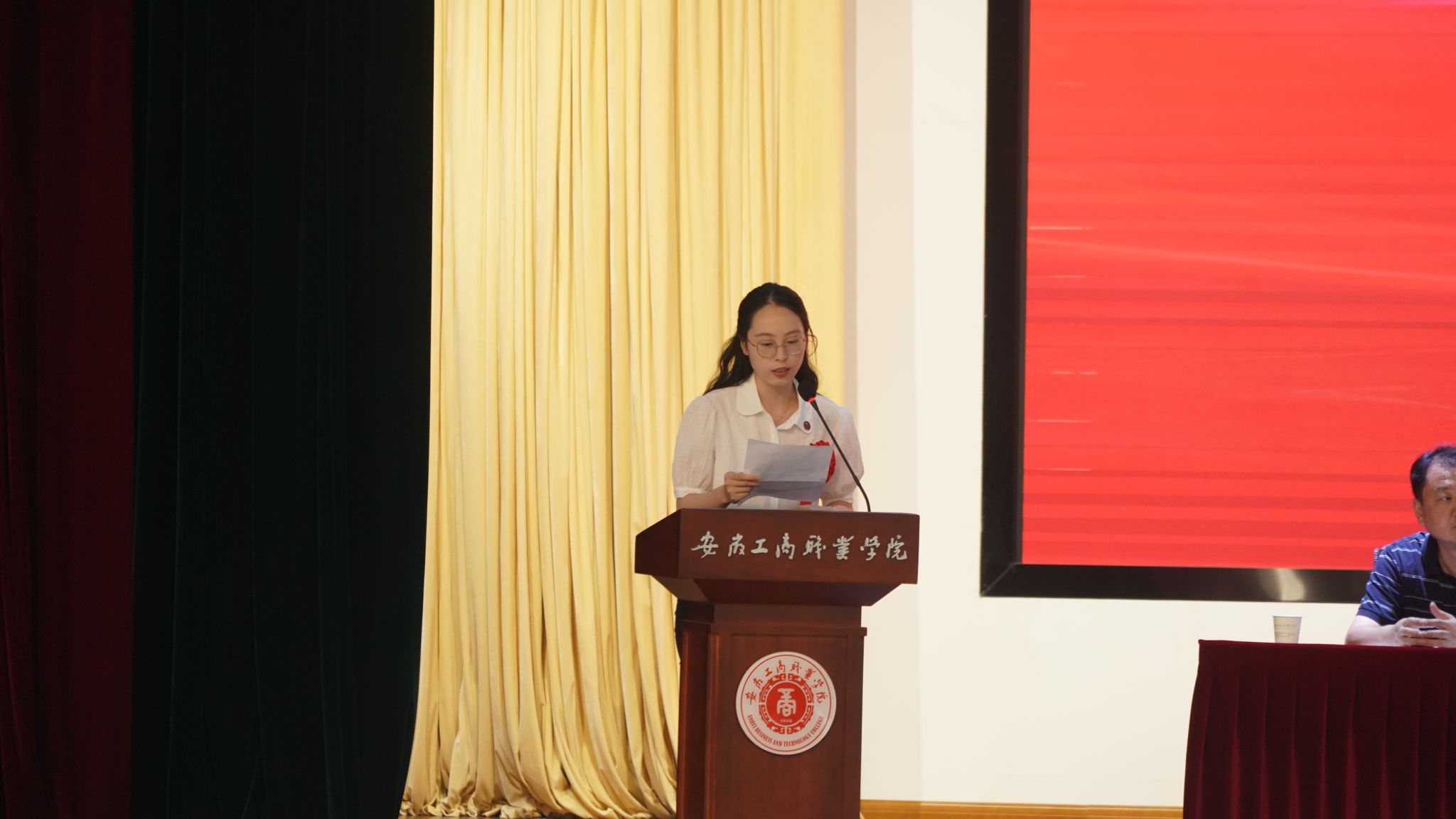 大会在雄壮的国歌中开启。30名新教师进行了入职宣誓,新教师们表示,成为一名高校教师无上光荣,加入安工商大家庭倍感自豪,一定会忠诚教育事业,快速成长为学生期望与幸福的播种人,早日成长为一名优秀的“四有”好老师。来自管理学院的张天娇老师代表新老师发言。