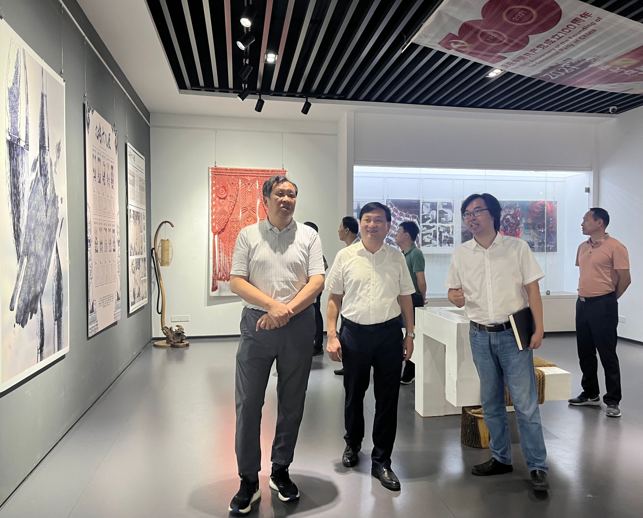 第八届安徽美术大展·艺术设计展(合肥展)于9月8日在安徽工商职业学院庐阳校区合瓦·VISION艺术馆正式开展。展览前夕,党委副书记、院长李雪,党委副书记陈行,合肥市庐阳区杏林街道党工委书记石际及杏林街道领导童俊、韩休华、陈勇等提前参观了艺术设计展。艺术设计学院党政负责人孔成、魏芬、张乐陪同参观。
