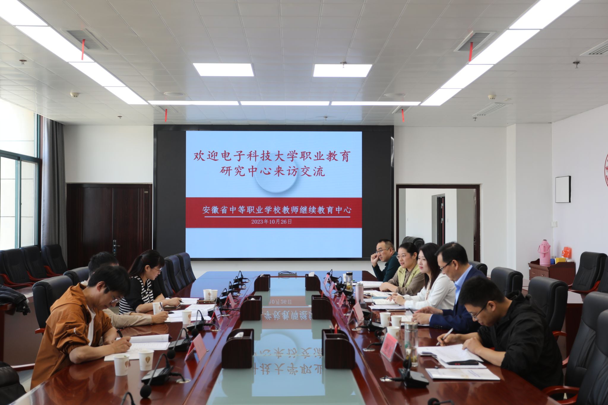 陈章奇对电子科技大学的来访表示热烈欢迎,代为转达了省教育厅师资处领导对电子科技大学此次来安徽进行交流回访的欢迎与感谢。座谈会上,双方就实施“职教国培”示范项目、职业院校教师素质提高计划项目和名师名匠名校长项目、学习安徽省职教师资培训工作的先进经验和做法,加强工作交流与合作等内容进行深入交流。文思群一行此前已赴萧县师范学校、安徽电子信息工程学校、安徽机械工业学校、淮南教师进修学校等派训单位,对往届安徽省中职教师"职教国培"示范项目、"素提计划"项目的参训学员进行了跟踪考察和实地走访。座谈会上文思群一行还就派训学校和参训学员在返岗研修、日常工作、教科研实践、实训资源等方面反映出的实际问题和意愿诉求做了详实汇报,并分享了当前进入人工智能大模型时代后对职教师资培训工作所带来的影响。