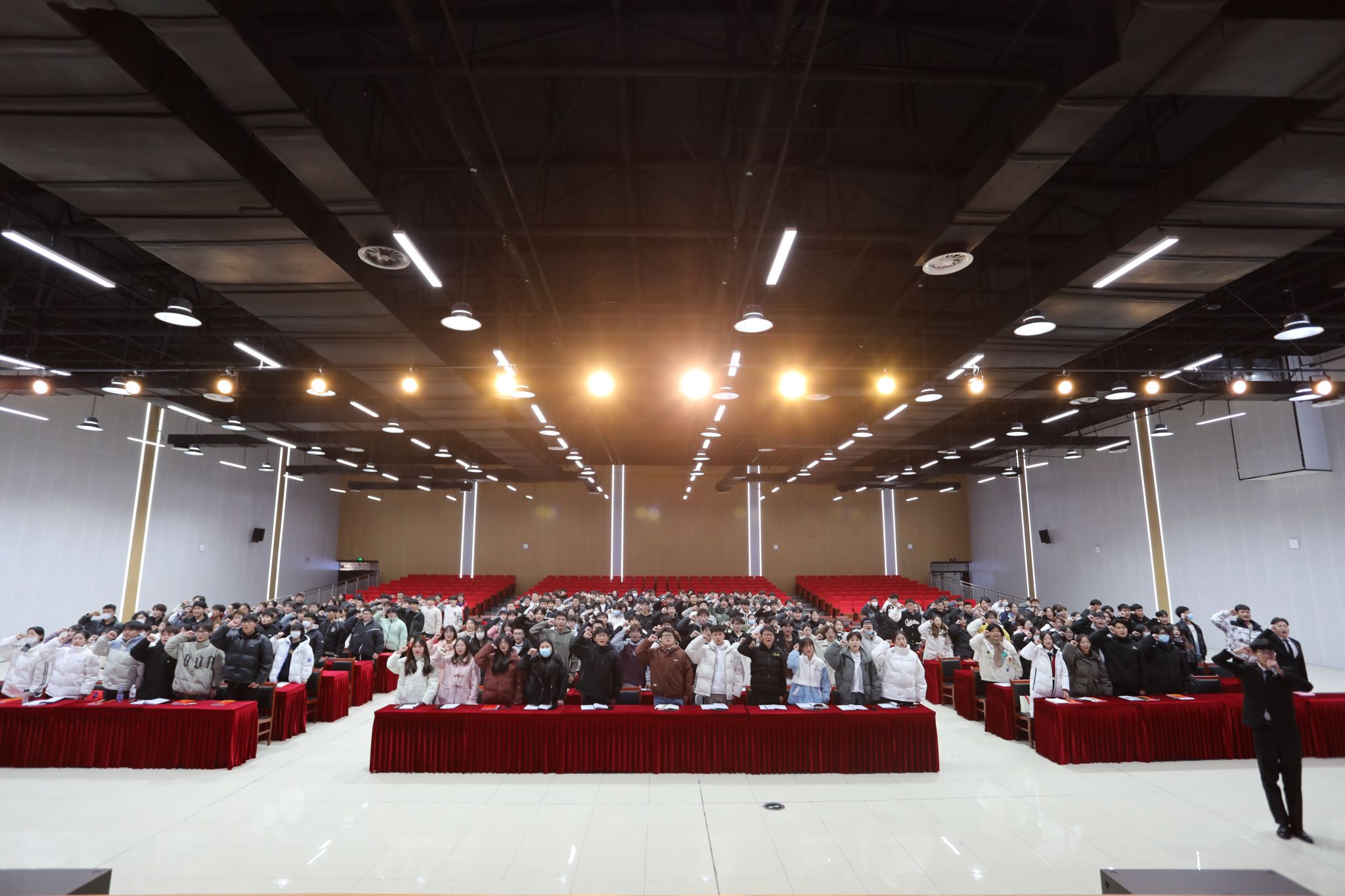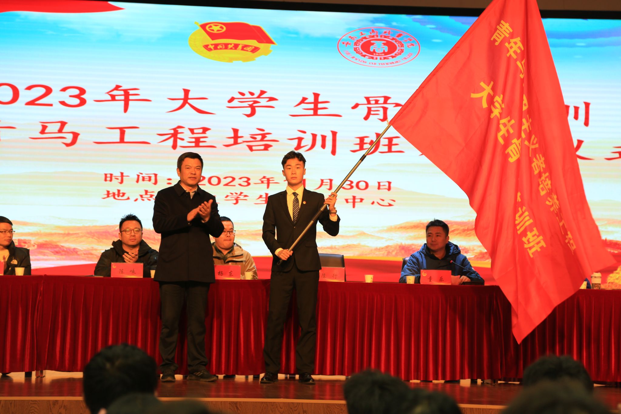 11月30日,学校2023年大学生骨干培训班暨“青马工程”培训班在大学生活动中心开班。校党委委员、党委副书记陈行出席本次活动,各二级学院团总支书记、校团委老师,23级各班班长、团支部书记,校级和各二级学院学生组织主要干部、校级社团负责人,共计300多人参加开班仪式。本次开班仪式由校团委副书记童乐主持。