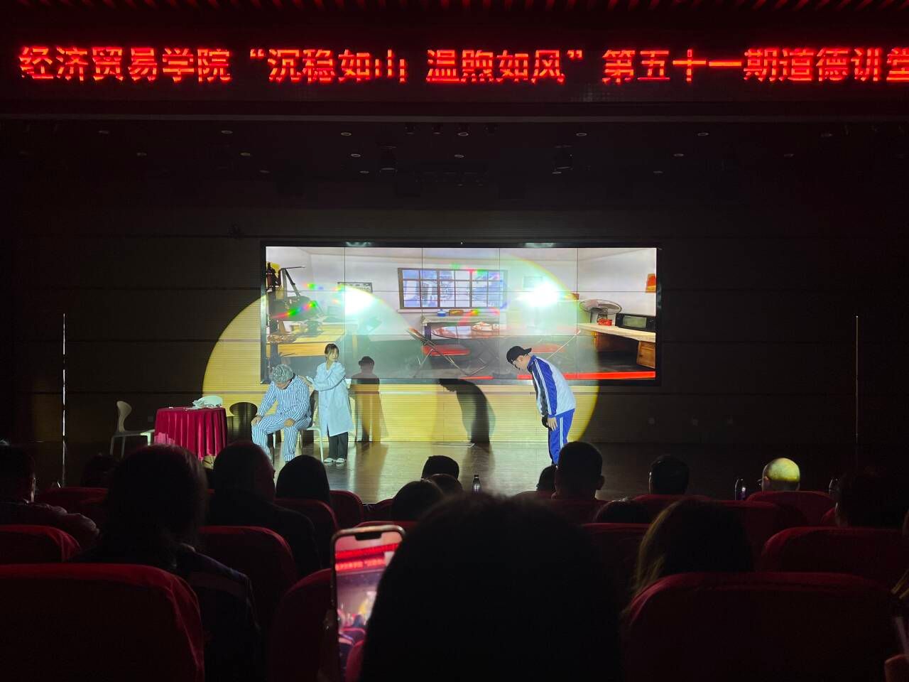 12月6日中午,由安徽工商职业学院主办,经济贸易学院承办的学校第五十一期道德讲堂——《沉稳如山 温煦如风》在双凤校区学术报告厅隆重举行。经济贸易学院党总支书记边昊、院长张颖、党委宣传统战部马大峰及经济贸易学院全体教师和400余名学生参加了此次活动。