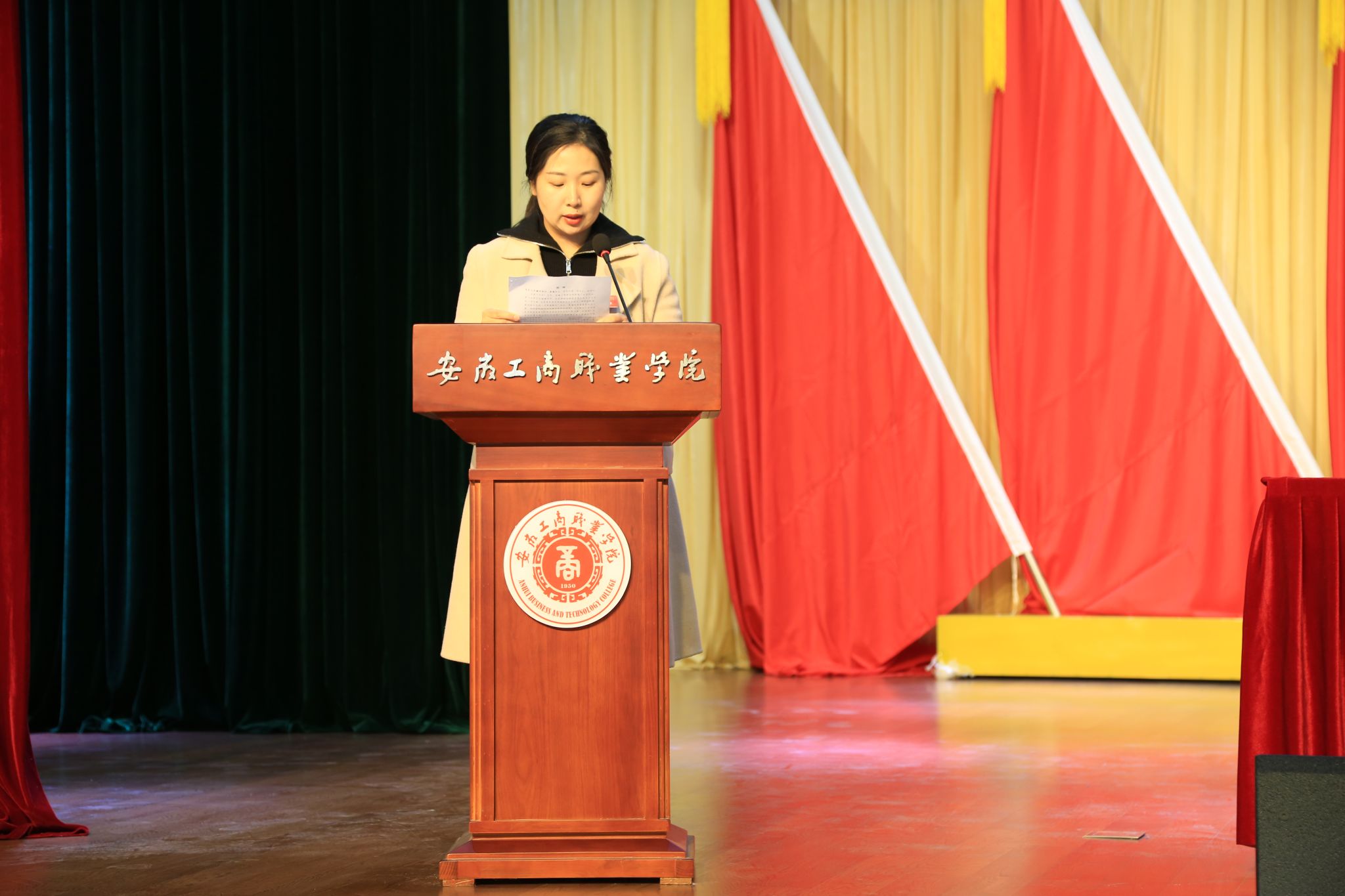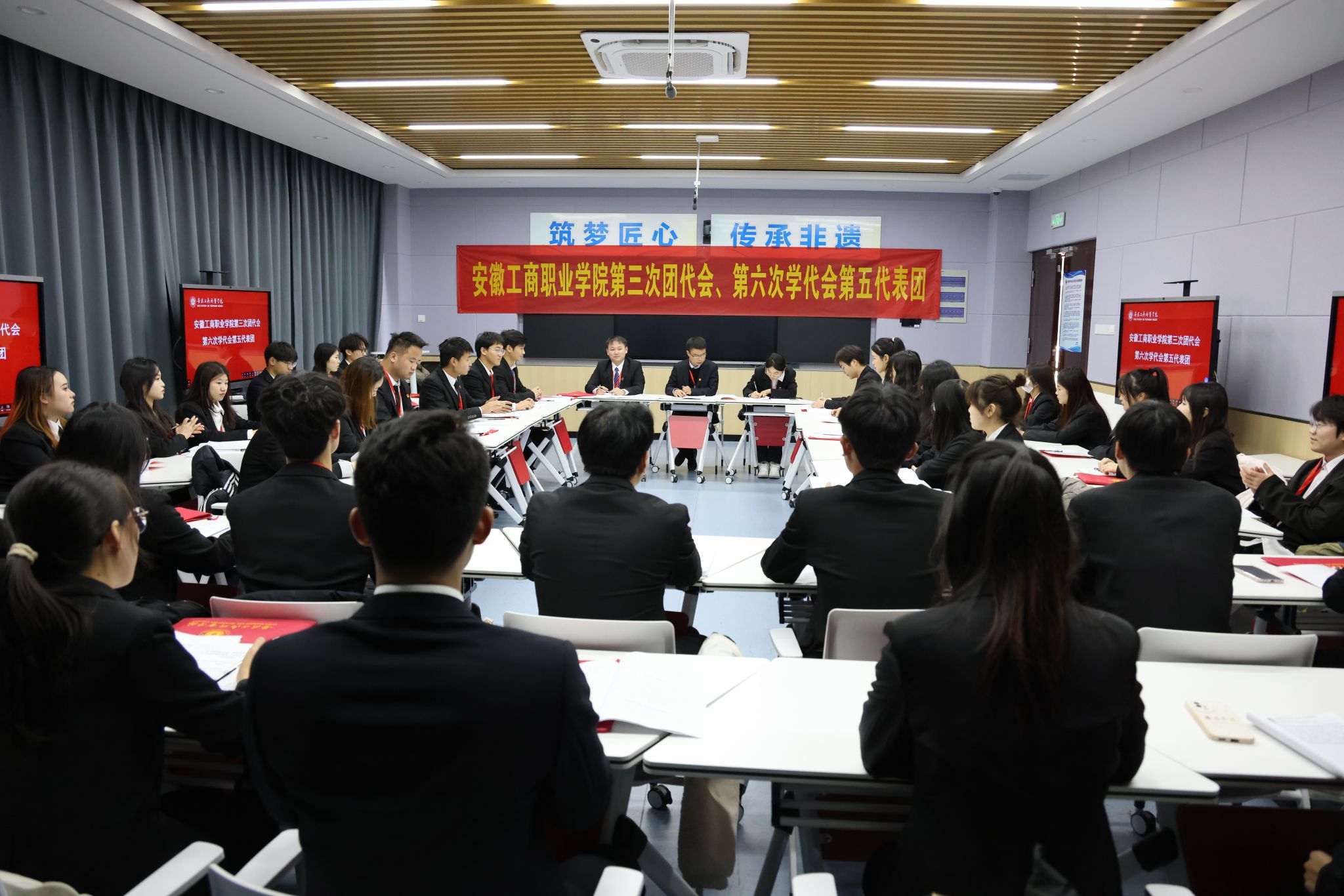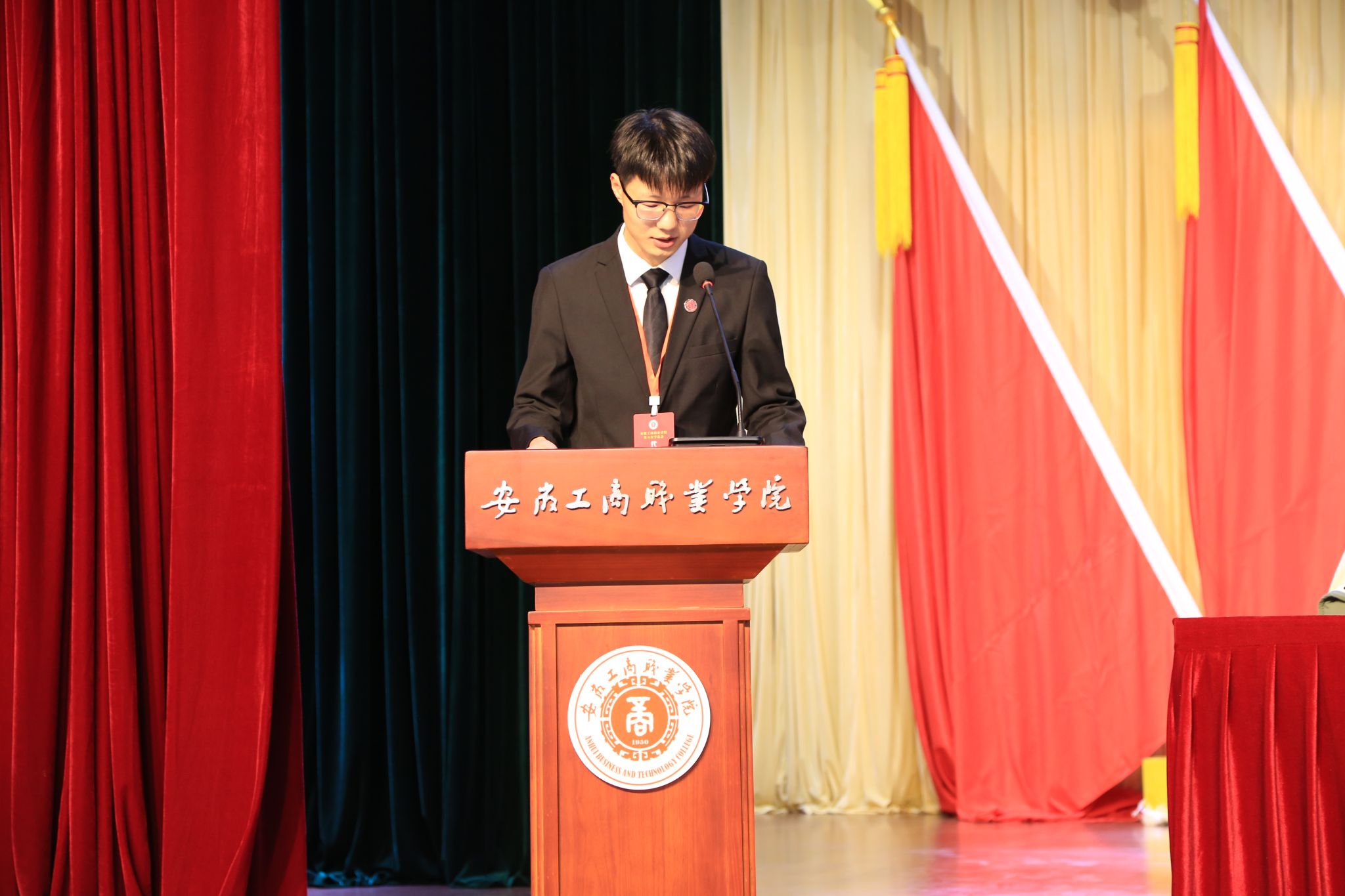 校团委副书记童乐代表共青团安徽工商职业学院委员作了题为《奋楫杨帆 挺膺担当,为建设更高层次、更高水平的中国特色高职院校贡献青春力量》的工作报告,张玉龙同学代表安徽工商职业学院学生委员会作了题为《高举旗帜跟党走,砥厉奋进向未来,让青春在强国建设、民族复兴新征程上绽放光彩》的工作报告。