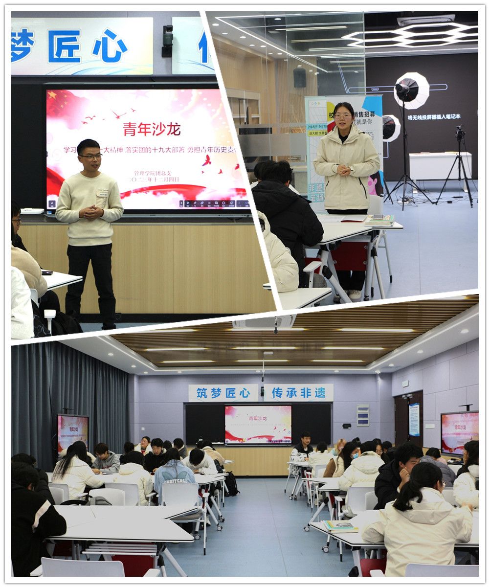 2023年12月4日,学员们在各二级学院团总支书记的带领下,分组进行了主题为《学习党的二十大精神,落实团的十九大部署,勇担青年历史责任》的青年沙龙,学员们在思想的碰撞中擦出了青春激扬的火花,纷纷表示将深入学习贯彻党的二十大精神和团的十九大精神,坚持以习近平新时代中国特色社会主义思想为指导,扎实学好理论知识,积极投身实践锻炼,把青春奋斗融入党和人民的伟大事业当中,争做有理想、敢担当、能吃苦、肯奋斗的新时代好青年。
