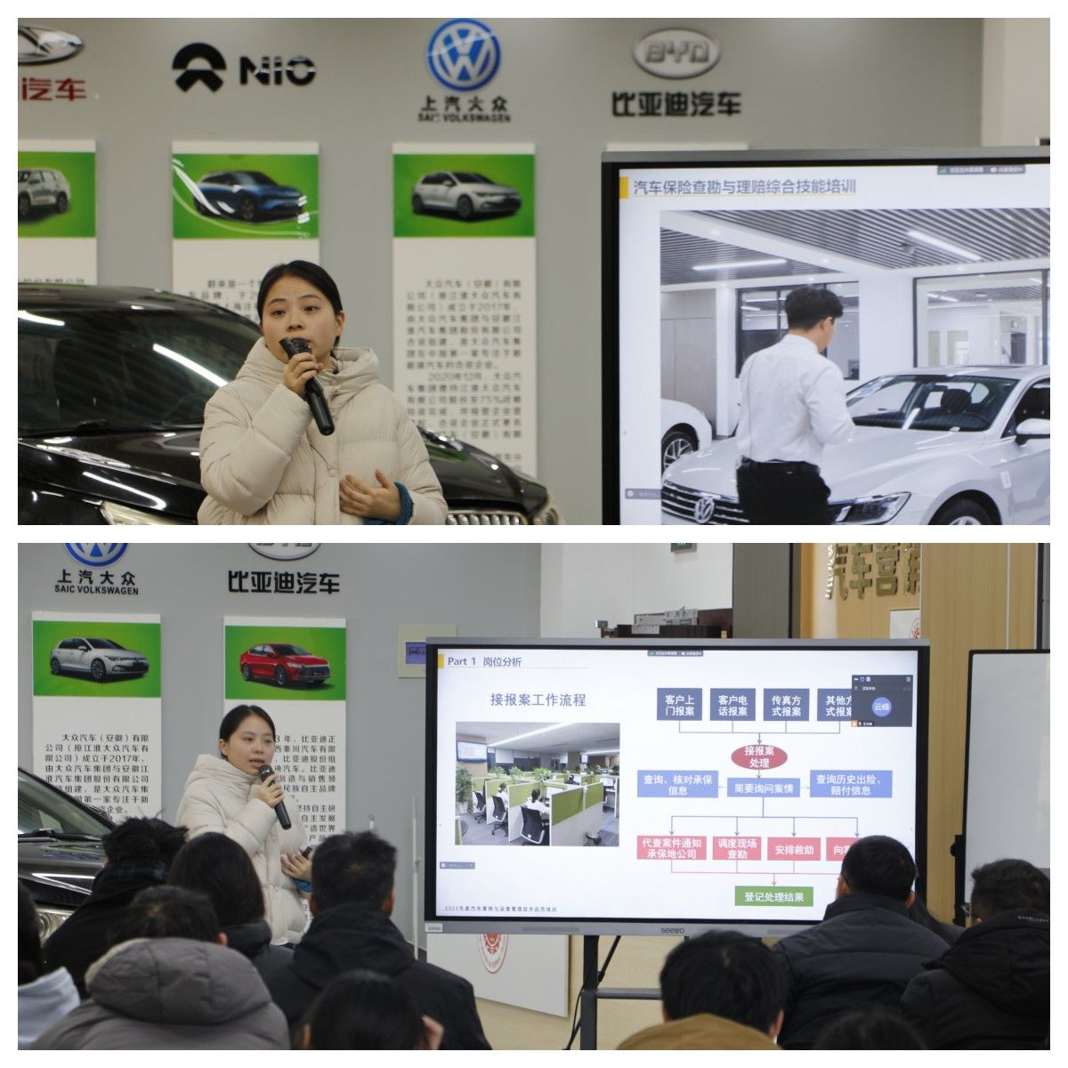 本次培训邀请了汽车营销赛项国赛专业组组长、教指委委员、武汉城市职业技术学院张红英院长进行讲座。张红英从国赛项目的遴选、考察的依据、汽车营销赛项的模块构成、考核重点进行了详细地介绍,并结合2023年汽车营销国赛赛场各校现场表现,分别从汽车新媒体营销策划、二手车鉴定(新能源车)与评估作业、汽车保险查勘作业等几个方面进行了对比讲解,并现场培训各参会院校师生。