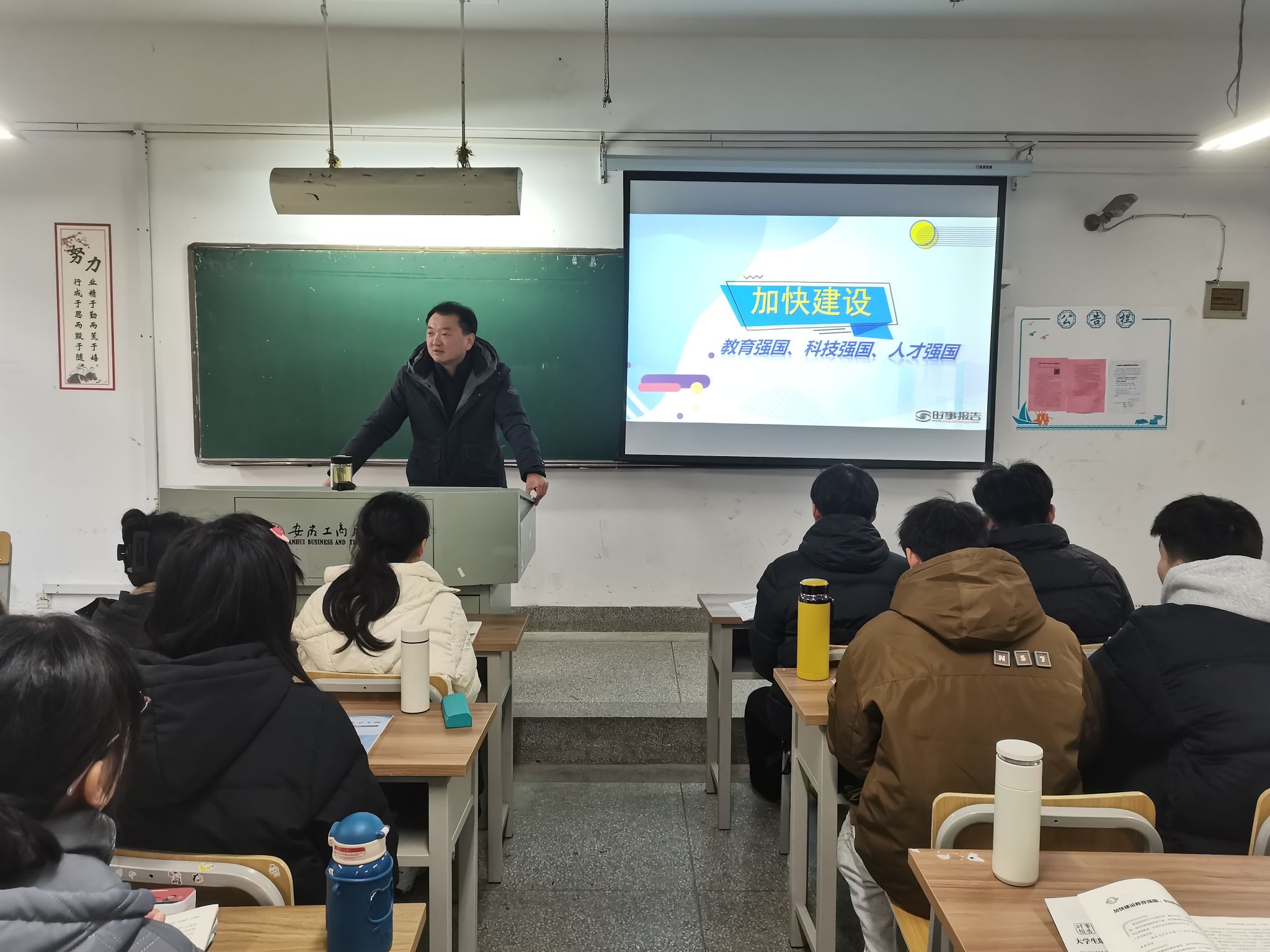 为全面贯彻党的教育方针,落实好学校党政领导班子带头推动思政课建设的要求,本学期以来,校党委班子成员齐建平、李雪、陈行、胡捍东、陈章奇、吴松飞、刘浩、孔成、朱小龙分别走进2023级各班级,为学生讲授形势与政策课。内容包含《开辟马克思主义中国化时代化新境界》《走好中国式现代化之路》《中国经济“形”稳“势”升》《加强建设教育强国、科技强国、人才强国》《赓续历史文脉 谱写当代华章》《以新安全格局保障新发展格局》等专题,用创新的理论、严谨的逻辑、生动的语言、鲜活的事例,带给青年学子精神的滋养。