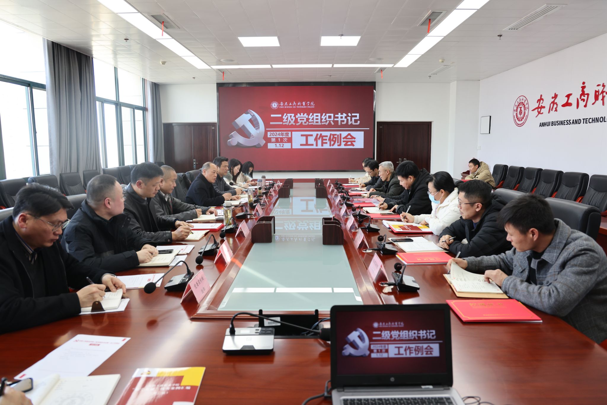 2024年1月12日下午,学校在综合楼三号会议室召开二级党组织书记工作例会。校党委书记齐建平,党委副书记陈行,组织人事处、党委宣传统战部、办公室主要负责人,各二级党组织书记参加了会议,会议由齐建平主持。