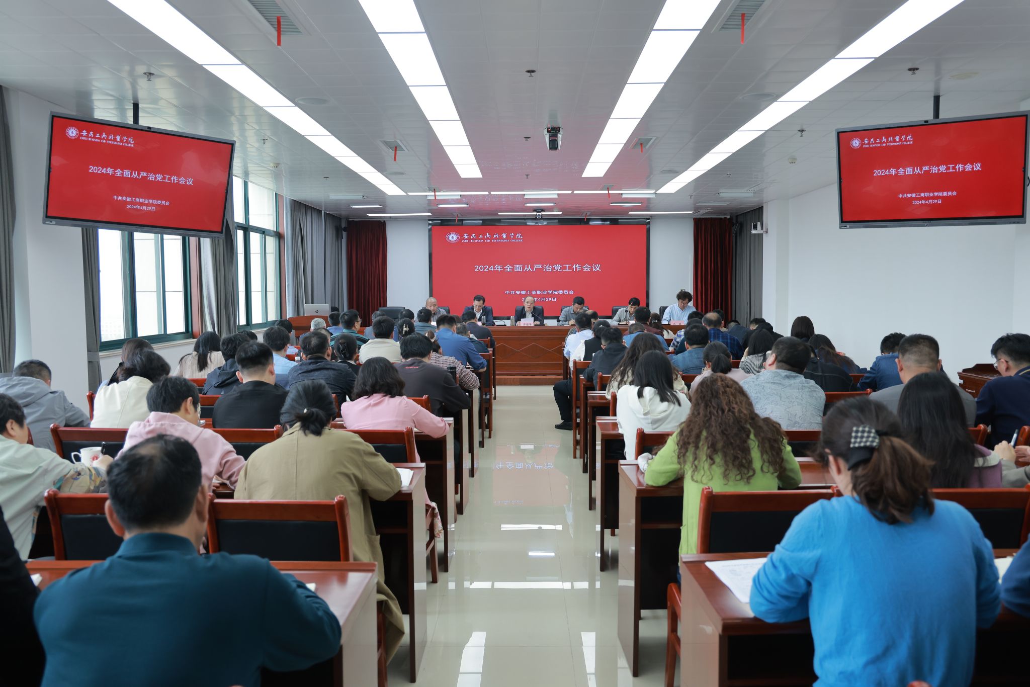 4月29日,学校召开2024年全面从严治党工作会议,传达学习全省教育系统全面从严治党工作会议精神,部署安排学校2024年全面从严治党重点工作。党委书记齐建平出席会议并讲话,校领导班子成员,党委委员、纪委委员,全体副科级以上干部,各党总支(直属支部)纪检委员,特邀督员,专职辅导员参加会议。会议由党委副书记陈行主持。