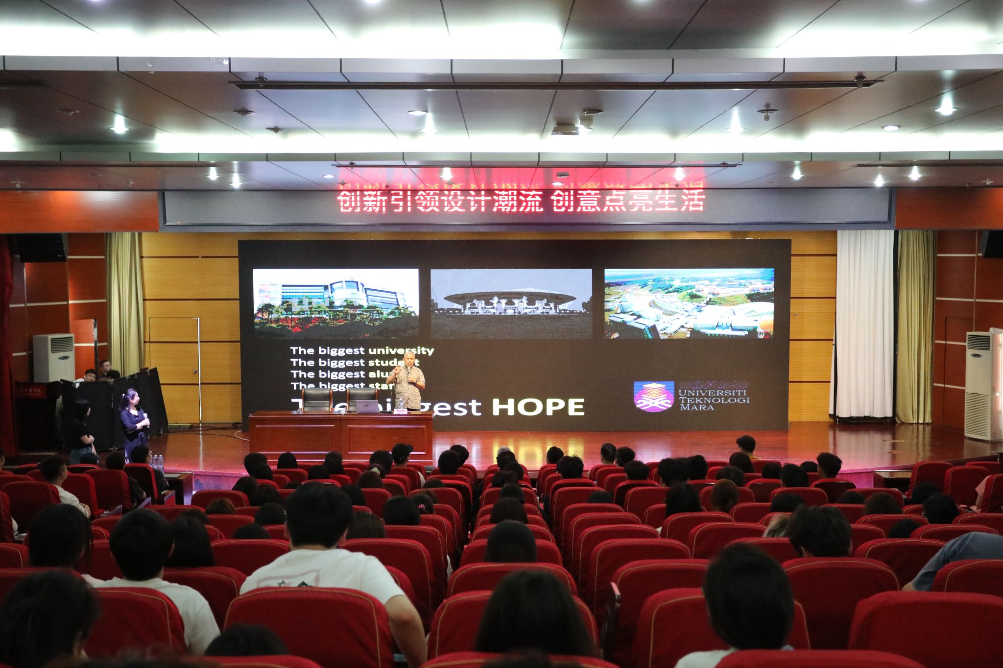 5月16日下午,第五十期工商大讲堂在安徽工商职业学院双凤校区学术报告厅举办。本次讲堂特邀马来西亚玛拉工艺大学博导、教授MOHAMAD HARIRI BIN ABDULLAH(默罕默德·哈里里·宾·阿卜杜拉)教授以《创新引领设计潮流,创意点亮生活——汽车设计之美与创意设计》为主题,为现场师生带来了一场洞见未来的精彩报告。讲堂在党委委员、宣传统战部部长孔成的主持中拉开序幕,智能制造与汽车学院、艺术设计学院等领导和老师出席,以及来自本科专业、中外合作专业、艺术设计类专业、汽车类等专业的300多名同学们一起聆听了讲堂。国际交流与继续教育学院李亮亮老师担任现场翻译。