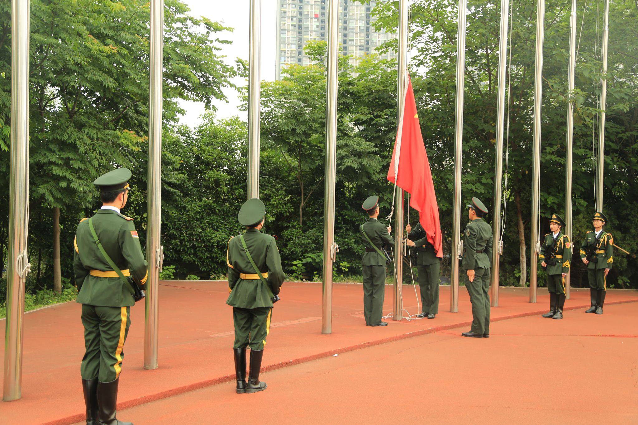 早上7时20分,学校国旗护卫队迈着整齐的步伐护送着五星红旗走向升旗台,雄壮的《义勇军进行曲》响起,鲜艳的五星红旗冉冉升起,全体师生神情庄重,满怀对伟大祖国的热爱与敬意,面向五星红旗行注目礼。