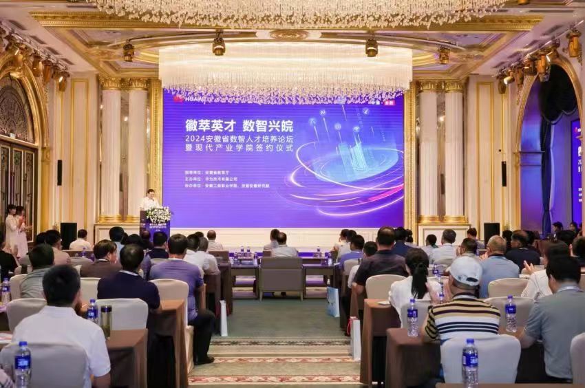 2024年6月21日, 由安徽省教育厅指导,华为技术有限公司主办,安徽工商职业学院和技能安徽研究院共同协办的,以“徽萃人才 数智兴皖”为主题的“2024安徽省数智人才培养论坛暨现代产业学院签约仪式”在合肥市成功举办。安徽省教育厅高等教育处副处长苏石、安徽工商职业学院党委书记齐建平、华为安徽政企业务部部长石斌及来自省内外代表院校的领导专家等出席会议。会议由安徽工商职业学院副院长陈章奇主持。