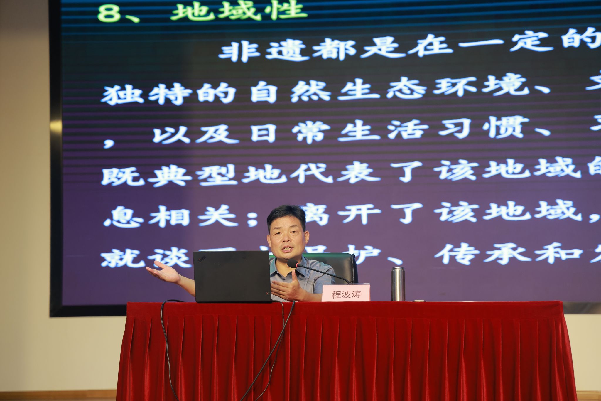 程波涛以《传统工艺美术类非遗的特征及其传承意义》为题,从“何谓非遗”“非遗的主要类型”“工艺美术类非遗的基本特性”“工艺美术非遗传承意义与创新路径”等五个方面入手,给全体师生呈现了一场非遗文化美的盛宴。