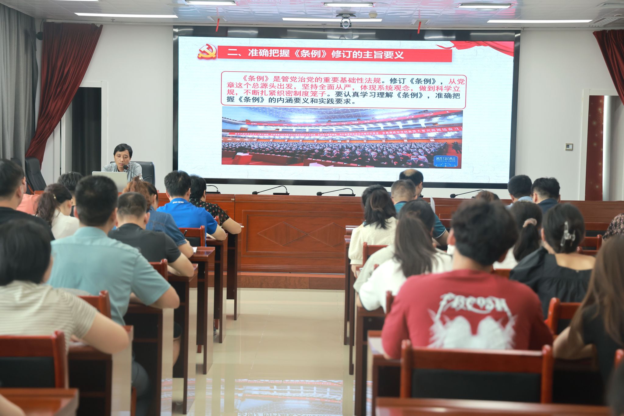 专题党课围绕“深刻认识修订《条例》的重要意义”“准确把握《条例》修订的主旨要义”“全面掌握《条例》修订的主要内容”“认真学习宣传贯彻执行《条例》”四个方面进行了详细讲解。