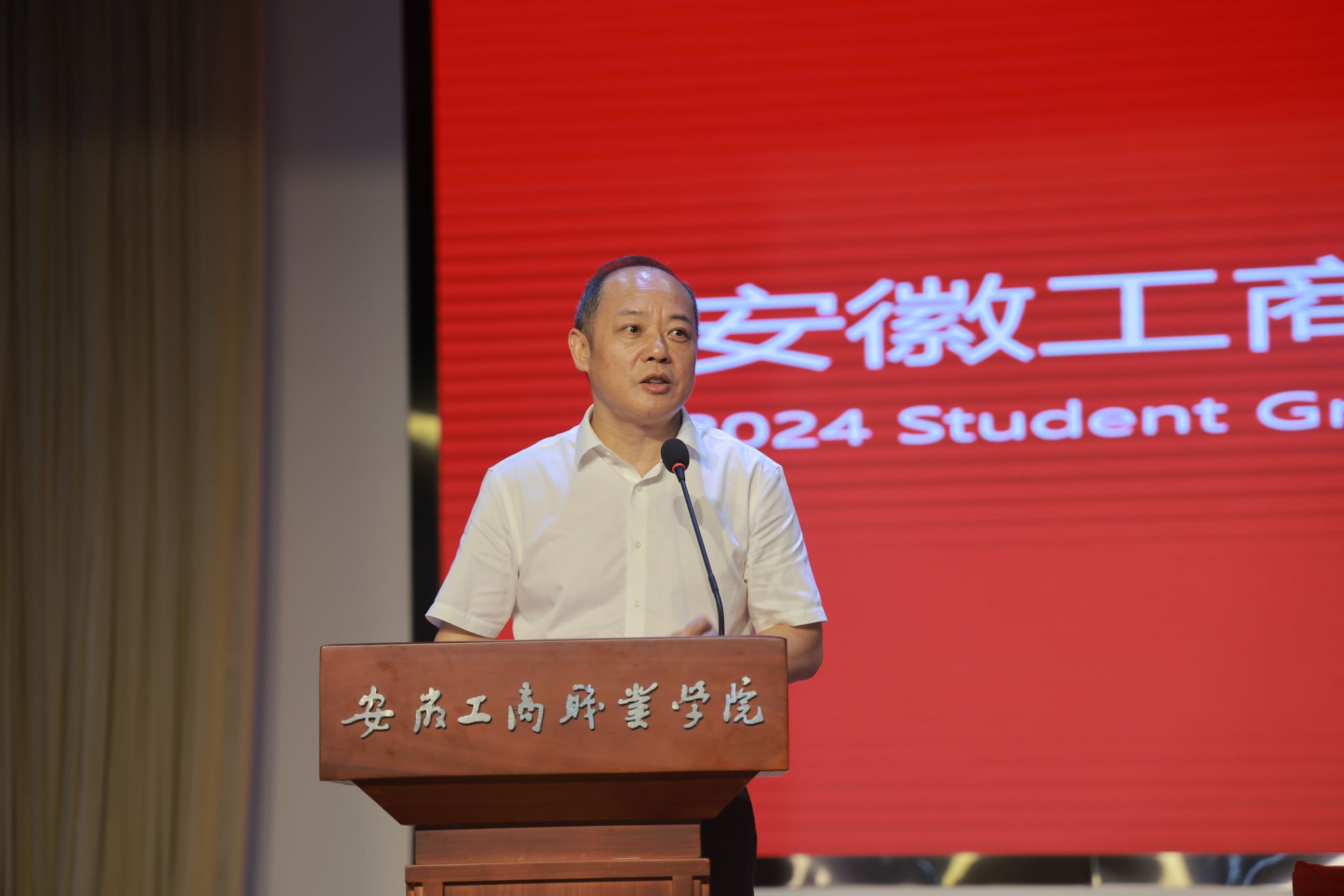 党委书记齐建平以《云程发轫启新程 怀揣梦想再出发》为题,满怀深情地为全体毕业生讲授了一堂难忘的思想政治课。他代表全校师生员工,向圆满完成学业的毕业生们表示热烈的祝贺,向辛勤养育同学们的父母,悉心指导同学们的老师致以衷心的感谢。他悉数了2024届毕业生获得的诸多荣誉,并对他们在学习、思想、生活等方面的成长与进步给予了充分肯定。他对全体毕业生提出四点希望,一是要志存高远,秉持情怀。希望毕业生将青春才干书写到新时代建功立业的宏伟理想和伟大实践中去。二是要坚守初心,不忘来路。守住初心、乐观面对,终将绽放属于自己的独特光彩。三是要脚踏实地,敢于担当。在各自岗位上敢于担当、兢兢业业、精益求精,创造安工商人别样的精彩。四是要终身学习,修身崇德。不断追求止于至善的大境界,以实际行动向社会传播真善美、传递正能量。他激励全体毕业生要保持安工商学子昂扬向上的姿态,放大格局,整装待发,奔赴更大的人生舞台。