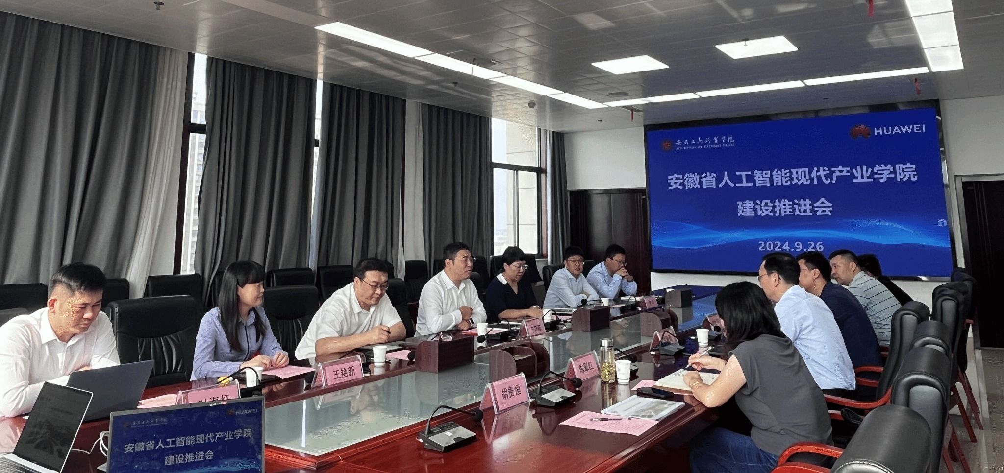 为了进一步深化校企合作,加快推进安徽省人工智能现代产业学院的建设进程。9月26日下午于综合楼第三会议室召开了安徽省人工智能现代产业学院建设推进会。华为全球公共事业军团副总裁李声阳一行七人参与会议。安徽工商职业学院党委委员、副院长陈章奇主持会议,信息工程学院相关老师参与会议。