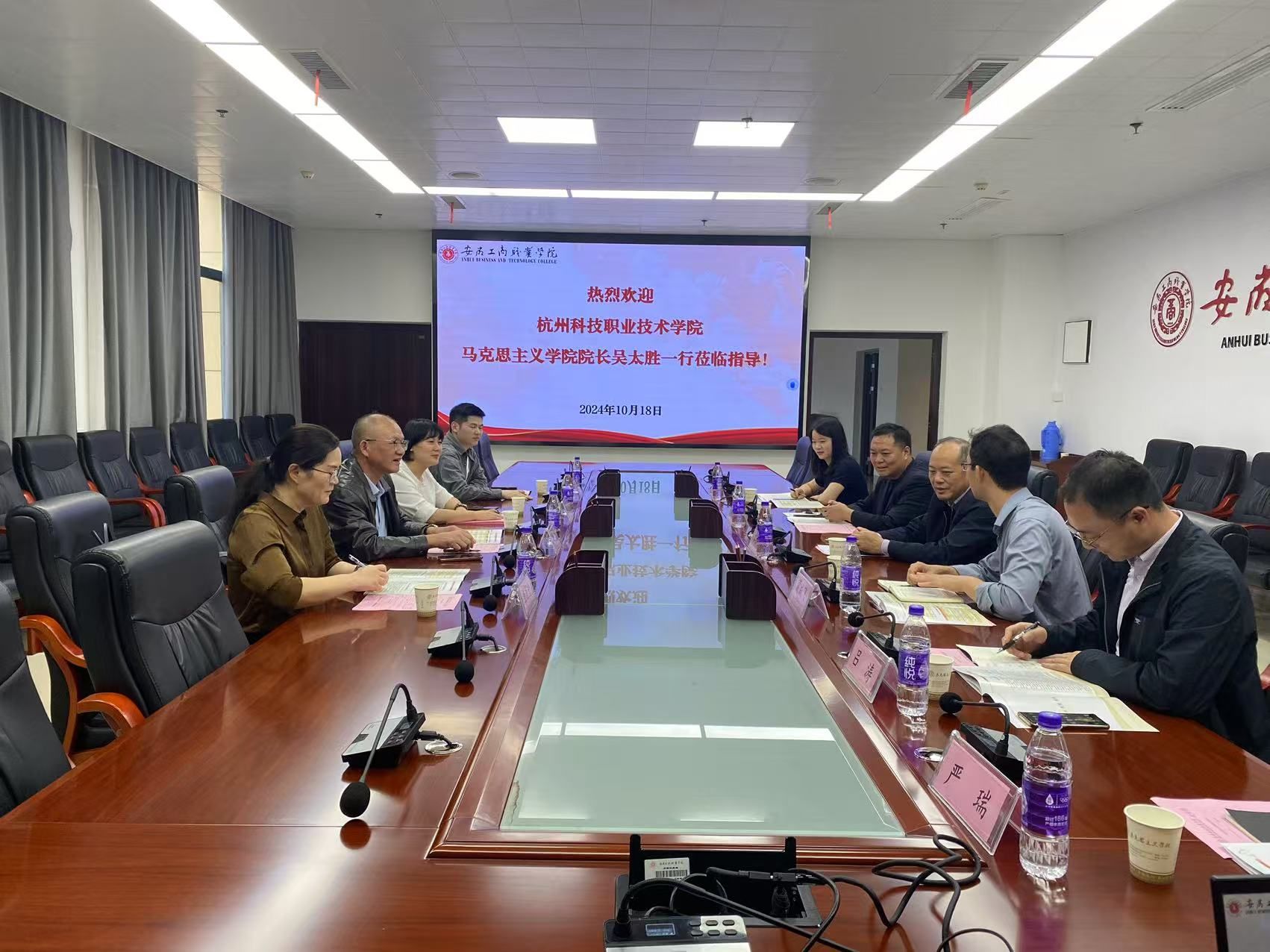 吴太胜一行对学校的热情接待表示衷心感谢,并详细介绍了杭州科技职业技术学院及其马院的建设历史、运行机制、课程建设、人才培养等情况。希望双方不断扩圈,交流互鉴,衔接融合,拓展双方在党建、思政、人才培养等方面的交流与合作,不断提升人才培养质量,共同推动思政课建设的内涵式发展。
