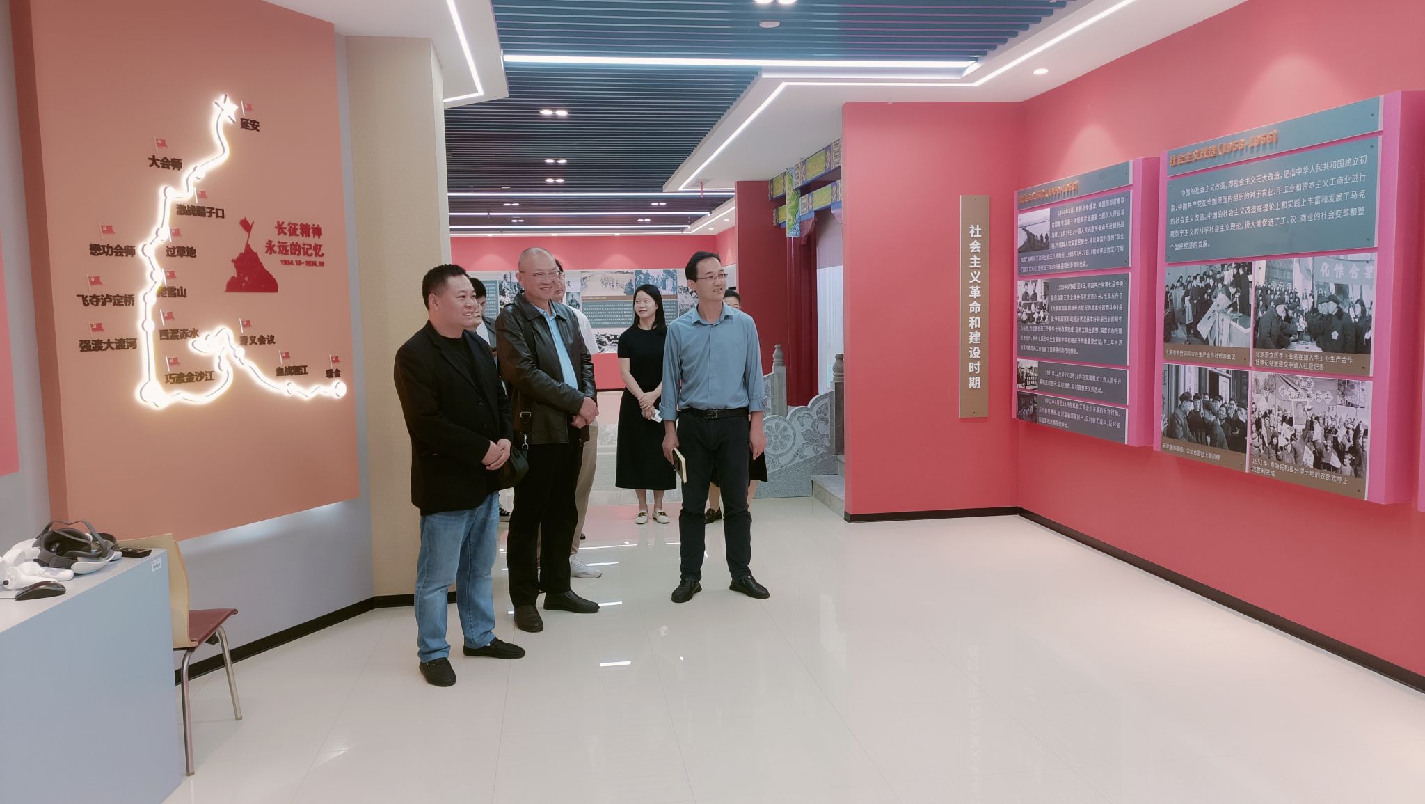 座谈前,马院主要负责人带领客人参观了学校智慧思政实践教学基地,双方就基地建设、实践教学开展等相关问题进行了深入交流。