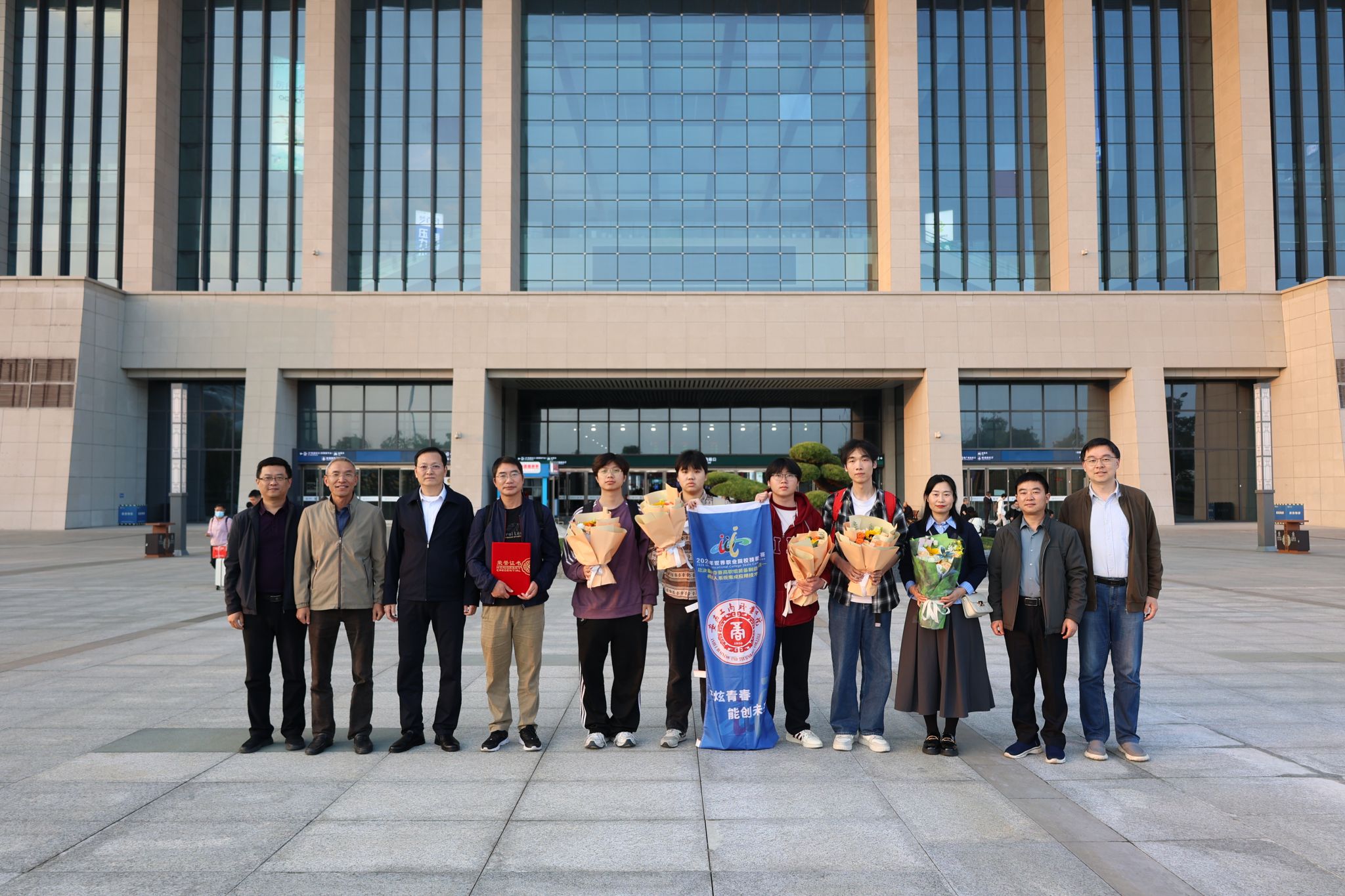 该赛项由张春芳、张传俊老师指导,来自工业机器人技术专业的王嘉豪、郭子豪、李浩宇和陈家旺同学参加了比赛。学校党委委员、副校长陈章奇带队、教务处及智能制造与汽车学院相关负责人陪同至合肥高铁南站迎接参赛团队凯旋归来,并为指导教师和参赛选手送上鲜花。