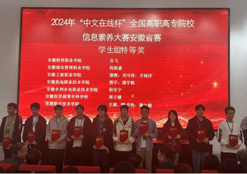 金风送爽秋意浓,丹桂飘香喜报迎。10月26日,由教育部高等学校图书情报工作指导委员会高职高专分委会指导,安徽省高等学校图书情报工作委员会、安徽高等学校数字图书馆主办,合肥幼儿师范高等专科学校承办,湖北中文在线数字出版有限公司和北京智信数图科技有限公司共同协办的“中文在线杯”2024年全国高职院校信息素养大赛安徽省赛决赛落下帷幕。