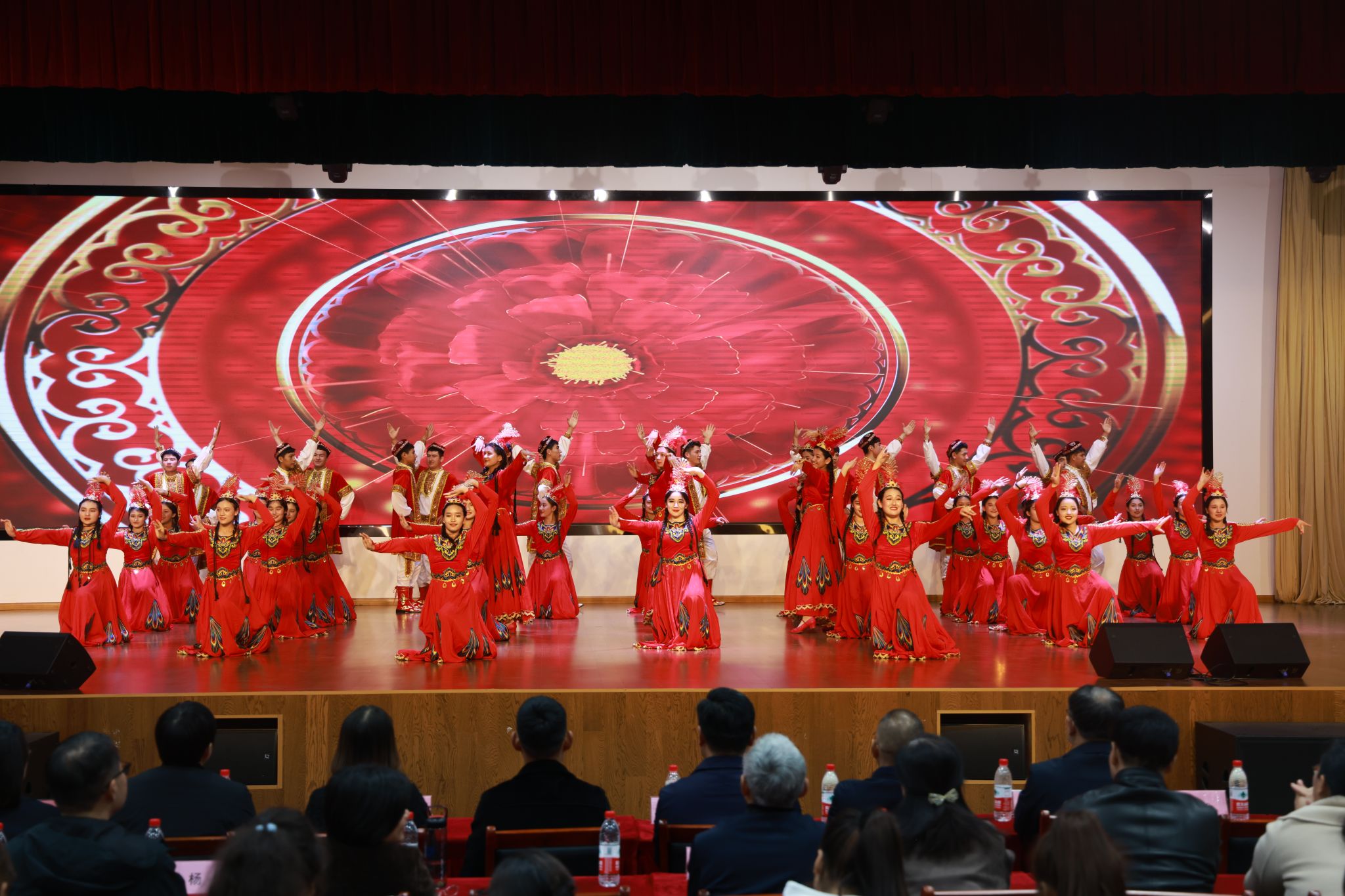 文化交流展演在皮山县中等职业学校带来的舞蹈中拉开帷幕,明快的节拍,飞扬的裙摆,赢得了现场同学们的热烈掌声和欢呼;一首《唱支山歌给党听》,生活在新疆土地上的各族儿女用深情的歌唱诉说着对党的深情、对家乡的热爱;随后来自新疆不同民族、不同风情的歌舞接连上演,顶碗舞、新疆“秧歌”让现场观众仿佛置身于新疆广袤大地,体验不同风情。皮山县中等职业学校教师带来的歌曲,一开嗓就惊艳全场,掌声雷动。演出的最后,“一起来跳新疆舞”的互动体验活动把现场气氛推向高潮,同学们也被这欢乐的氛围所感染,纷纷鼓掌喝彩,飞扬多彩的舞姿承载着多民族的情谊,共同续写着民族团结一家亲的深厚情谊。