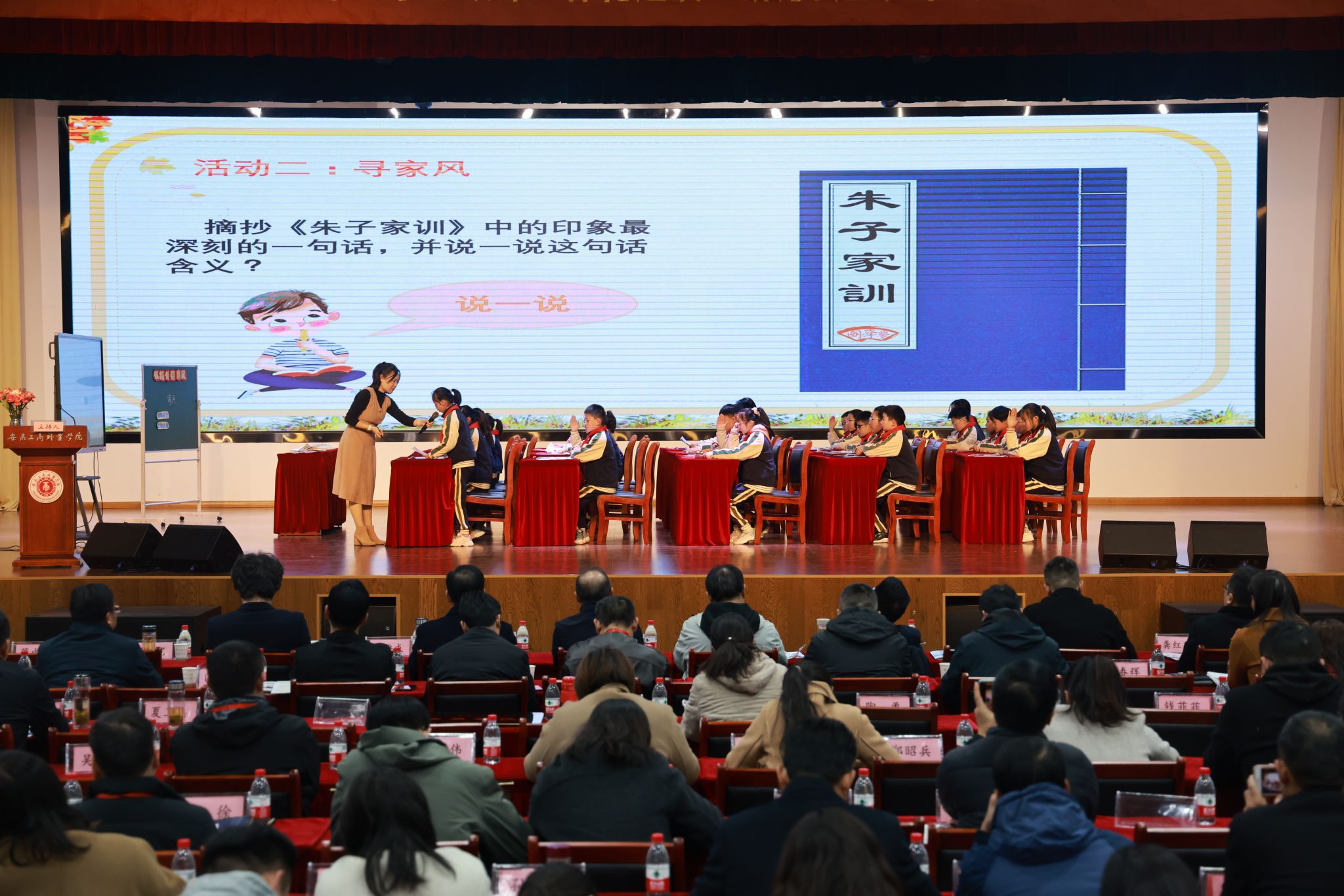 示范课展示环节,来自安徽工商职业学院、安徽国际商务职业学院、长丰县朱巷中学、长丰县第二中学和长丰县北城实验小学的五位教师代表围绕《弘扬家庭美德,传承良好家风家教》主题同课异构、同题共答、同台展示,共上一堂思政课。长丰县北城实验小学党支部书记、校长董飞虹,长丰县城关中学教科室副主任谭联合,合肥工业大学附属中学思政名师、安徽省特级教师曹勤,安徽省大中小学思政课一体化建设专家指导组组长刘新跃先后作精彩点评。