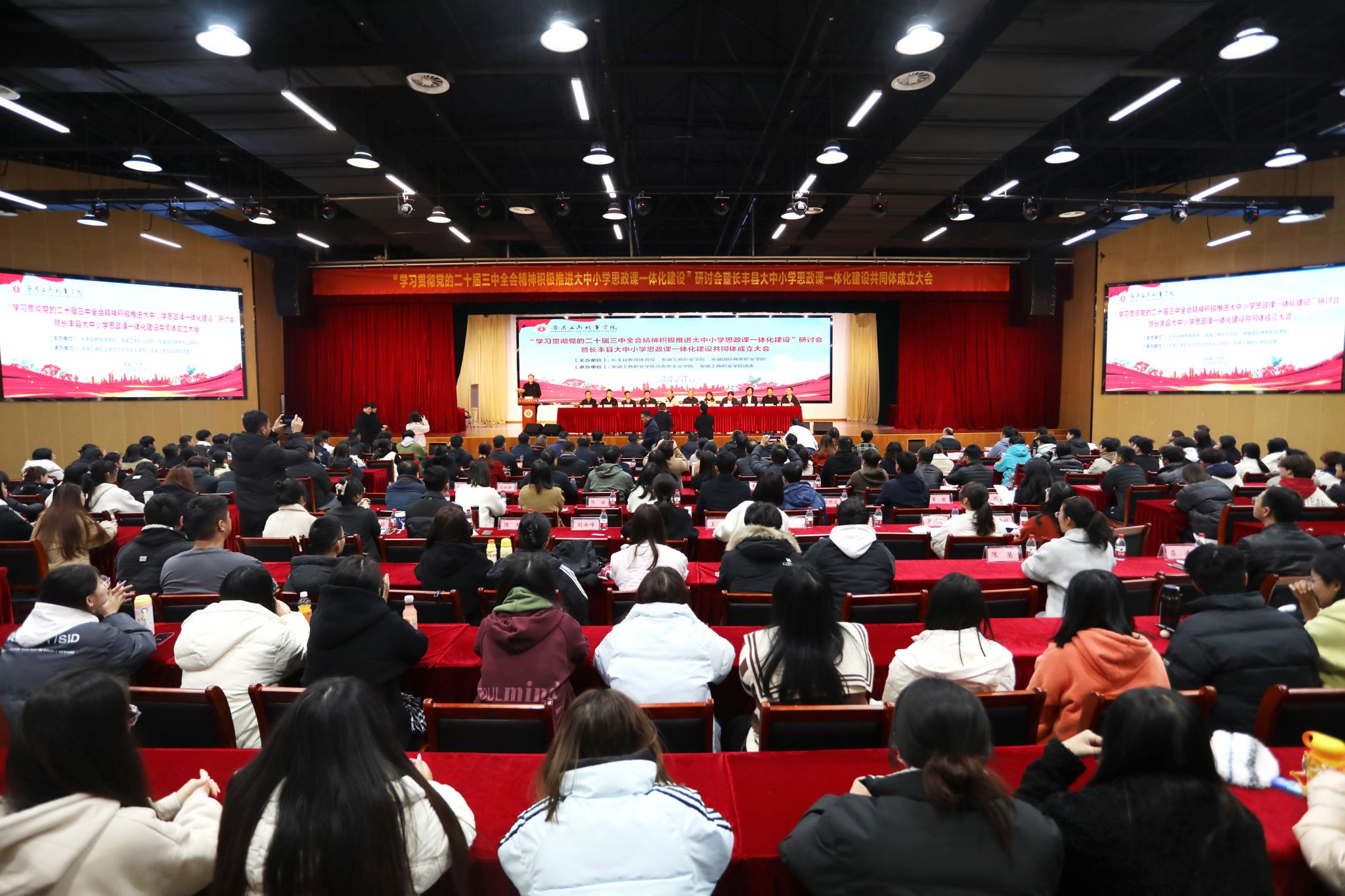 11月29日,“学习贯彻党的二十届三中全会精神,积极推进大中小学思政课一体化建设”研讨会暨长丰县大中小学思政课一体化建设共同体成立大会在世界第一大赌场,澳门金沙城中心:成功举行。会议由长丰县教育体育局、安徽工商职业学院、安徽国际商务职业学院共同主办。安徽省大中小学思政课一体化建设专家指导组组长、教授刘新跃、安徽工商职业学院党委书记齐建平、合肥市教育局党委委员、副局长张艺国,安徽工商职业学院党委委员、副校长陈章奇、长丰县教育体育局党委书记、局长杨维成、安徽工商职业学院党委委员、党委宣传统战部部长孔成等出席启动仪式并为共同体成员单位授牌,安徽中医药大学等专家学者及来自长丰县28所大中小学主要负责人及教师代表100余人参加大会。陈章奇主持大会。