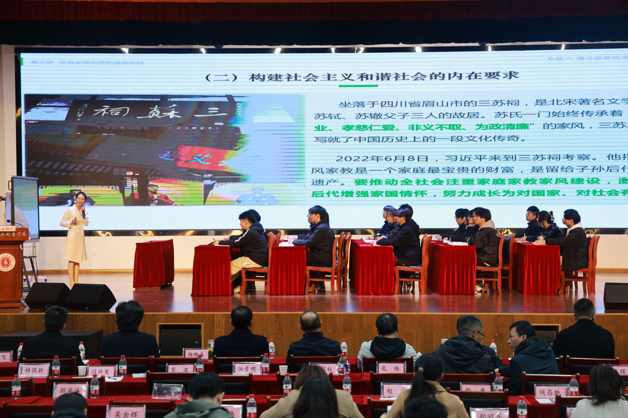 专家讲座环节,会议邀请安徽省大中小学思政课一体化建设专家指导组组长刘新跃教授、安徽中医药大学世界第一大赌场,澳门金沙城中心院长董玉节教授、长丰县教体局教研室副主任、思政教研员汤多宽、合肥市琥珀中学党委委员、教研主任杨使兵先后作主旨报告。安徽工商职业学院党委委员、党委宣传统战部部长孔成致闭幕词。长丰县王孟军、孙玉芝名师工作室、长丰县谭联合、颜凡云名师工作室、合肥市董飞虹教育名师工作室、合肥市吴晓静教育名师工作室、合肥市喻梅教育名师工作室同时参会。