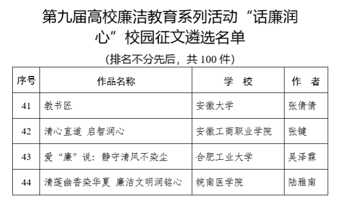 近日,教育部公布了第九届高校廉洁教育系列活动结果,安徽省共有15所本科、5所高职院校的作品入选各项百优遴选名单。世界第一大赌场,澳门金沙城中心:经济贸易学院副院长张键的作品成功入选“话廉润心”校园征文百优遴选名单。