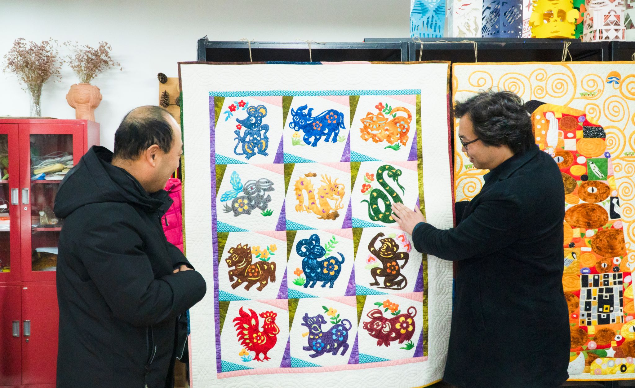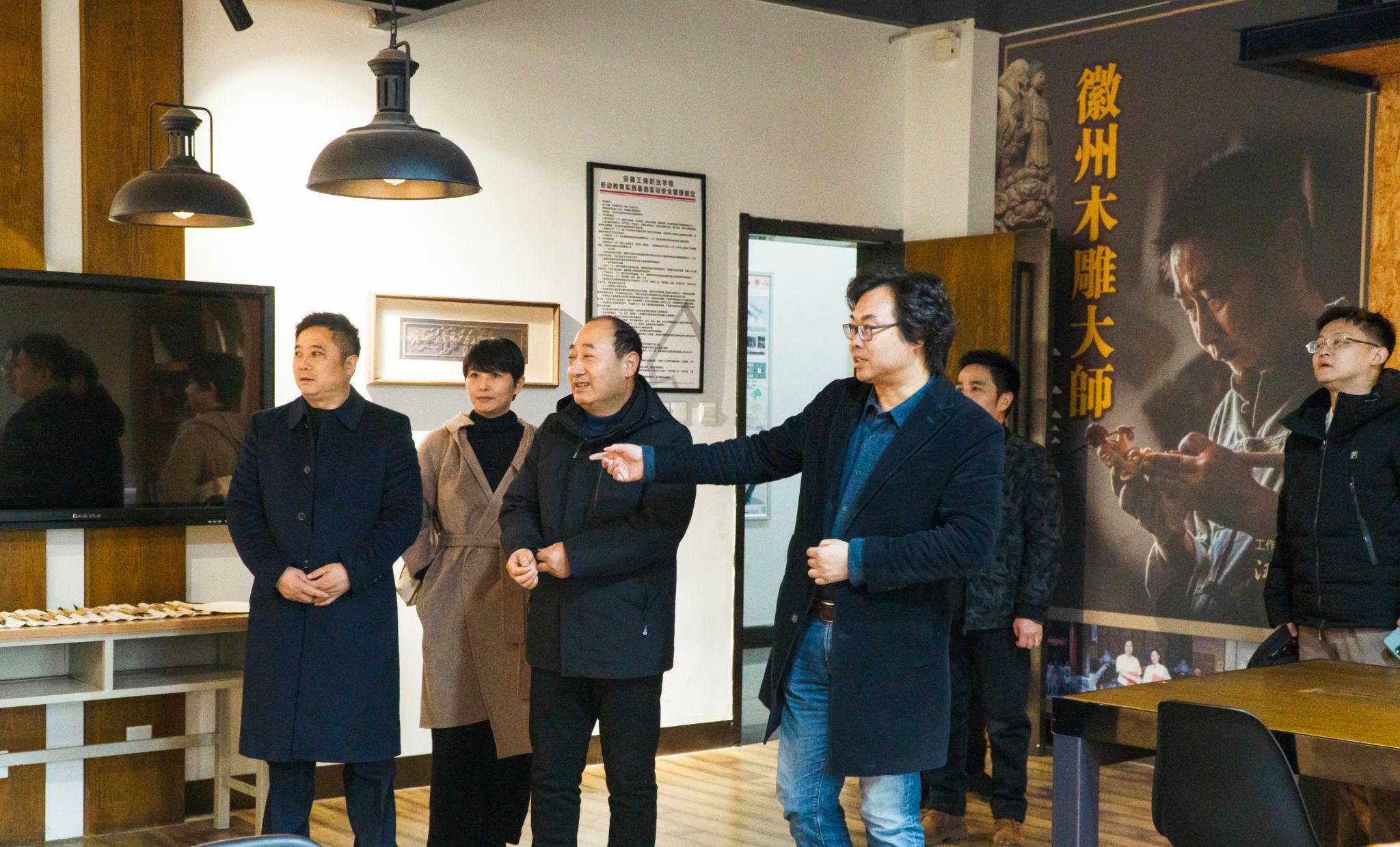 座谈交流结束后,缪剑一行实地参观了庐阳校区的徽派三雕技艺大师工作室、雕塑造型艺术中心、印染工作坊、家居软装工作室,欣赏了学校一楼大厅花艺课程、装饰构成课程的结课作业汇报展,缪剑对学校在徽文化技艺传承方面所做的努力、师生展现出的精湛技艺以及校园蕴含的深厚徽文化底蕴给予了高度评价。