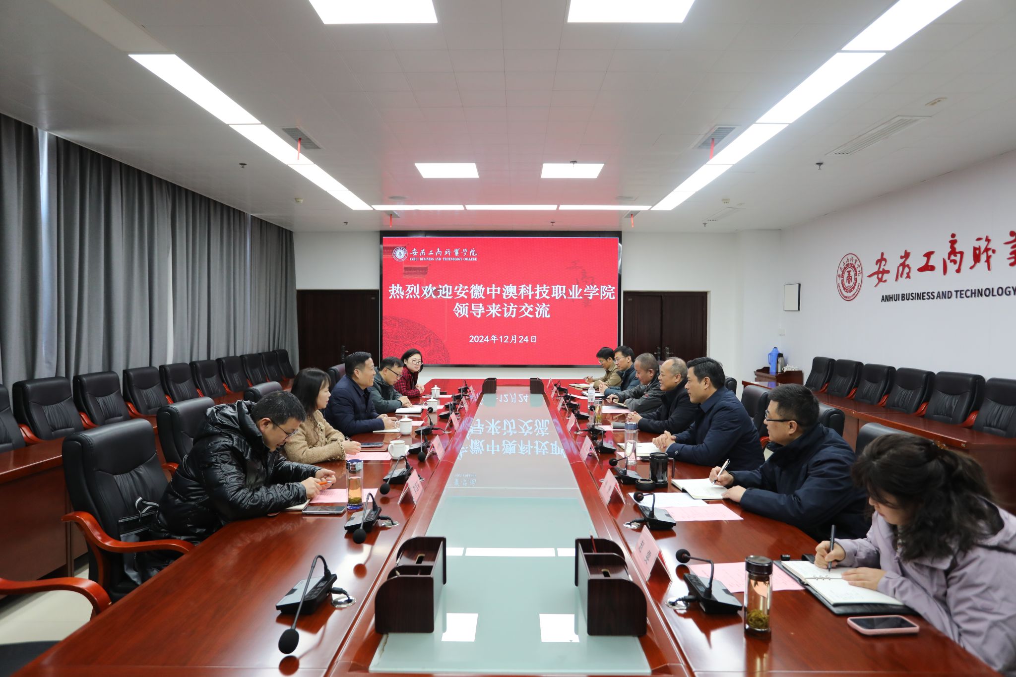 12月24日上午,安徽中澳科技职业学院党委书记杨恒宇一行来世界第一大赌场,澳门金沙城中心:调研交流。校党委书记齐建平、党委副书记陈行在综合楼第三会议室进行了热情接待,办公室、组织人事处、教务处、信息工程学院等部门负责人参加了接待。