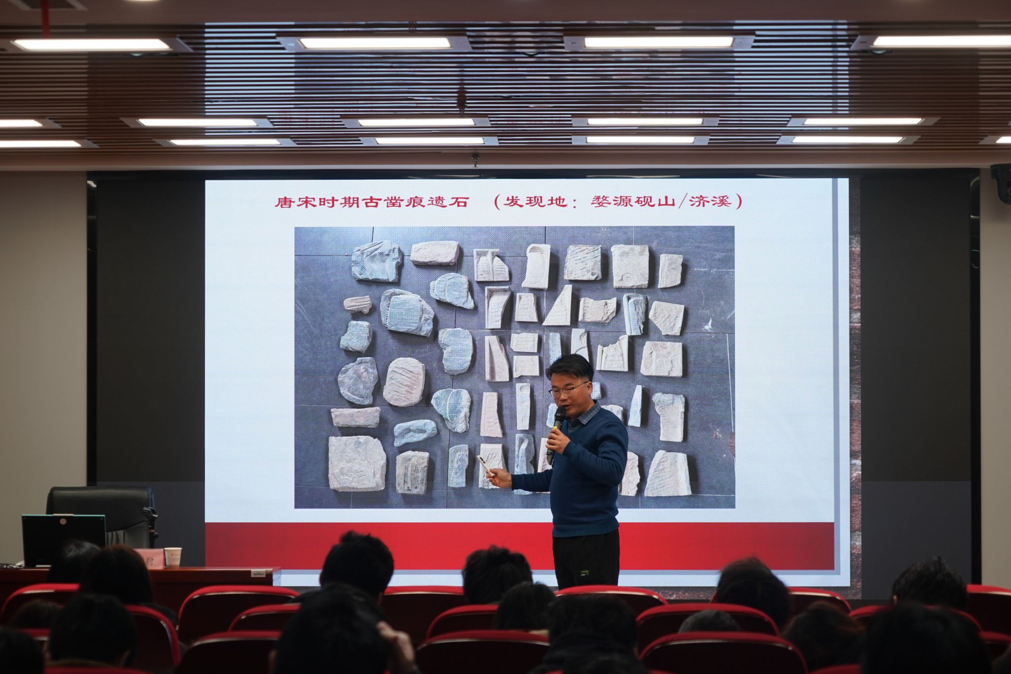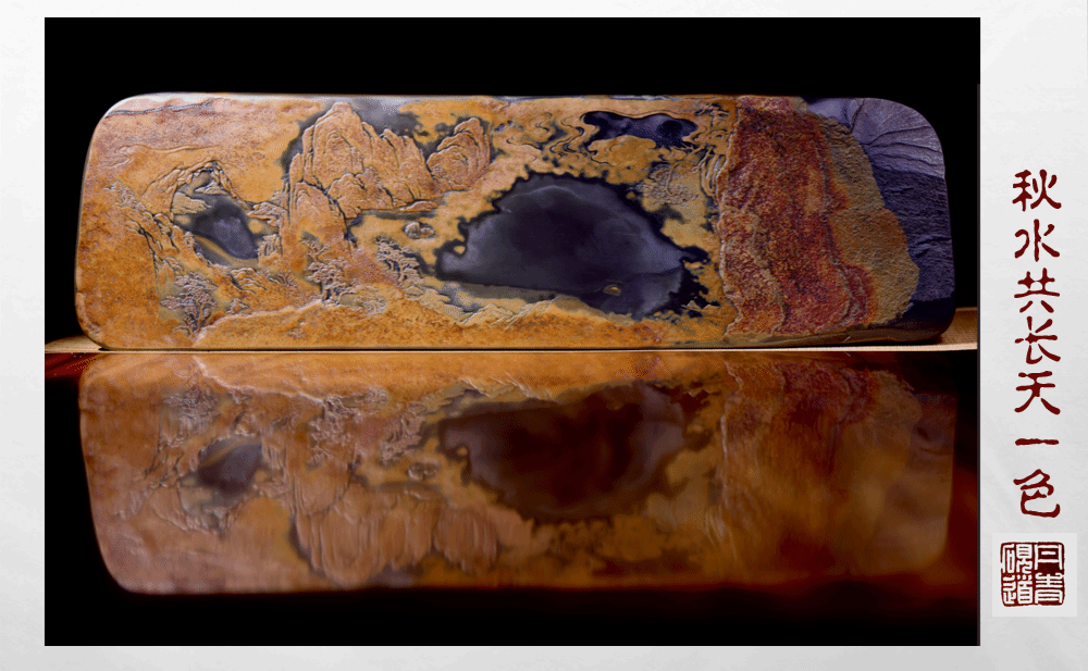 讲座的高潮部分,胡慧君老师展示了他众多优秀的歙砚作品,每一件作品都凝聚了匠心独运和精湛工艺,令人叹为观止。这些作品不仅展现了歙砚的自然美,更体现了胡慧君对传统工艺的传承与创新。特别是他荣获中国工艺美术百花奖金奖的作品——《秋水共长天一色》,更是让在场观众近距离感受到了歙砚的独特魅力。