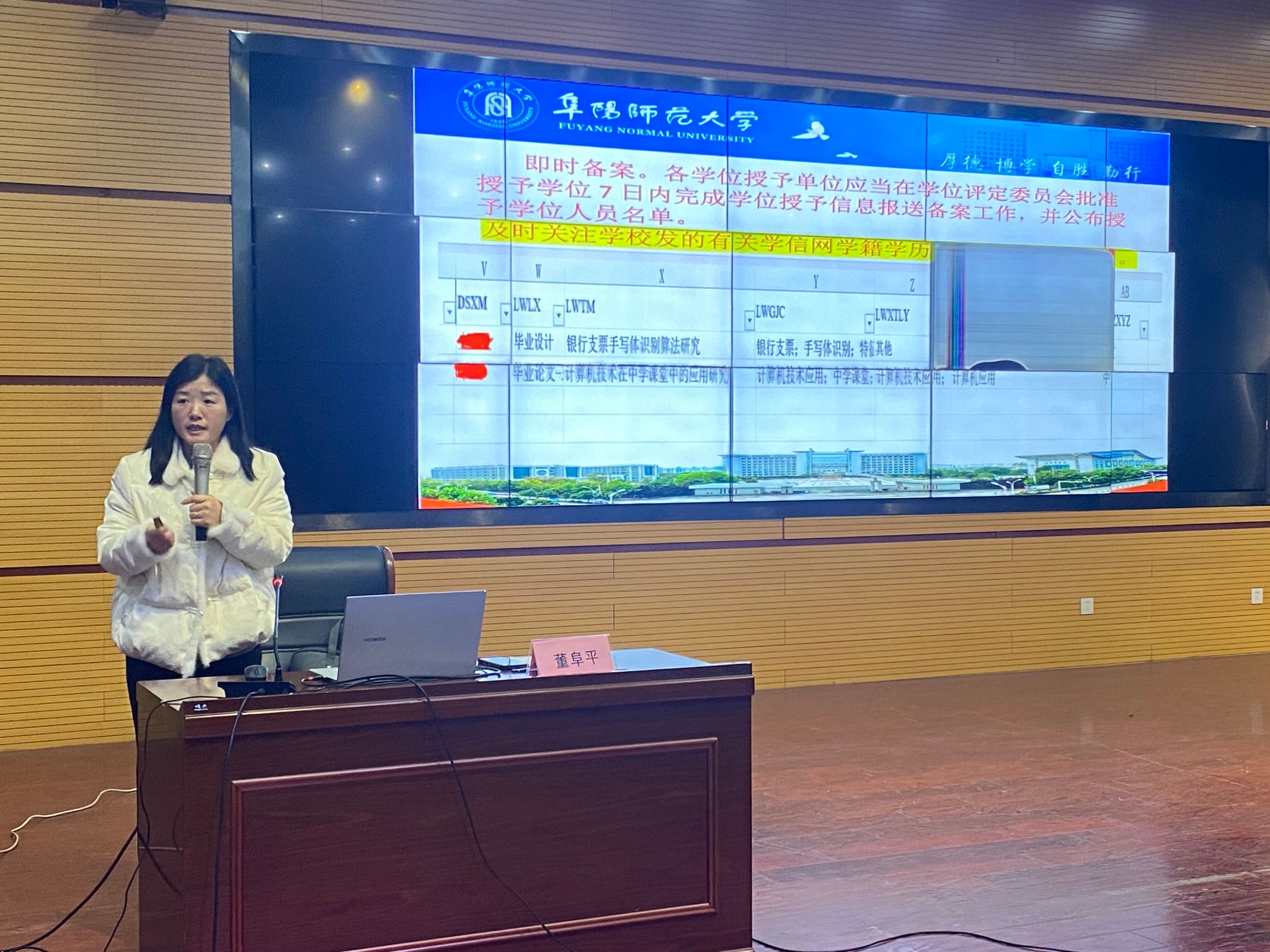 讲座内容丰富,详细解读了《阜阳师范大学本科生学籍管理实施细则》、《 阜阳师范大学本科学生毕业论文(设计)作假行为处理实施细则》、《阜阳师范大学普通本科毕业生学士学位授予工作实施细则》等文件,并就学分制管理、选课规则、学位授予条件等与学生息息相关的政策进行了分析与讲解。明确告知学生学分的获取途径和绩点的计算方式,以及如何结合个人的学习能力和科研兴趣合理安排课程修读,确保在规定的年限内顺利完成学业,顺利获得学位,并就学位授予条件,进行了分解说明,重点强调学业成绩、科研创新业绩、毕业论文成绩、实践学分修读成绩等方面内容。最后,董阜平教授对学生关心的相关问题进行了逐一解答,并对学生今后的就业方向、信息渠道等方面给予了综合指导。