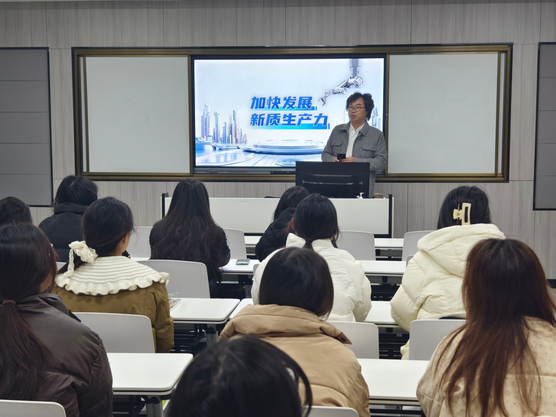 党委班子成员根据学生专业背景、所处学段循序渐进设计课程目标,结合校史校情、办学特色、专业优势等校本文化设计教学内容,以学生喜闻乐见的教学方式讲清“形势”、讲明“政策”,先后为学子们带去了“学习贯彻党的二十届三中全会精神”“七十五载迎盛世 砥砺前行续华章”“加快发展新质生产力”等专题内容。