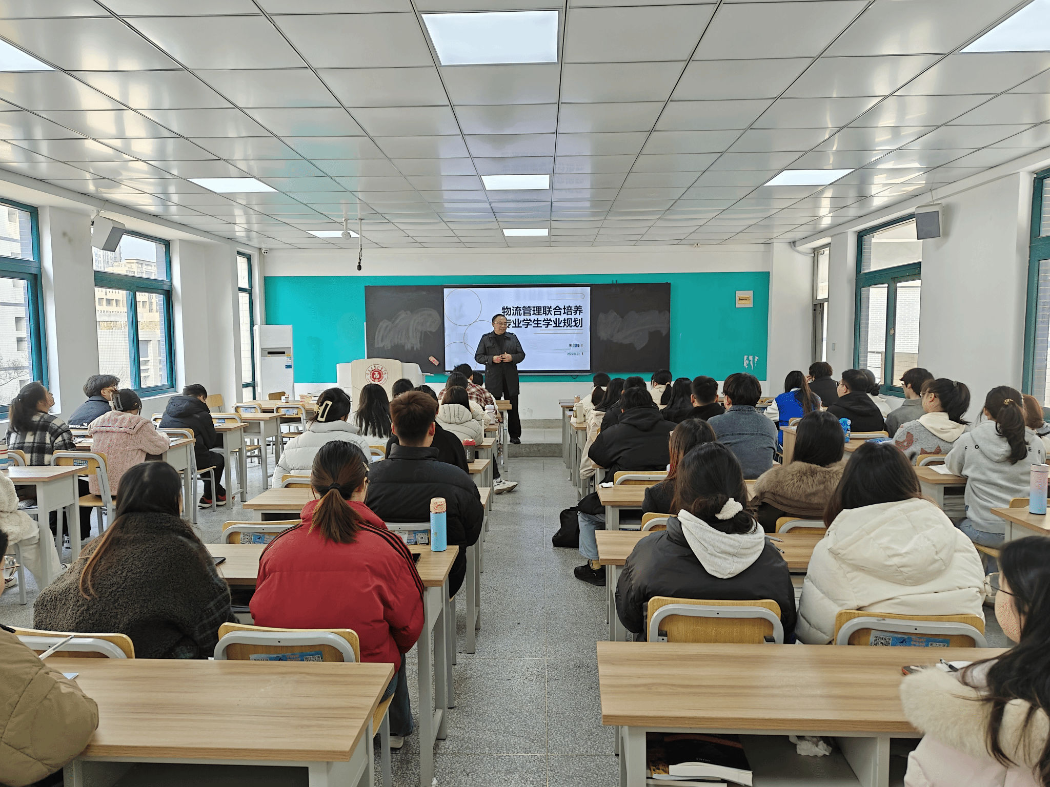 讲座内容紧扣主题,聚焦物流管理联合培养专业学生的学业生涯规划。朱剑峰教授从物流管理专业的发展现状及未来趋势入手,详细解读了专升本联合培养模式下的学业规划路径,并为学生提供了职业发展方向与能力提升的实用建议。此外,朱教授还分享了阜阳师范大学成功申报工程管理专业硕士学位授权点的经验,鼓励有意向的学生积极报考,进一步深造。