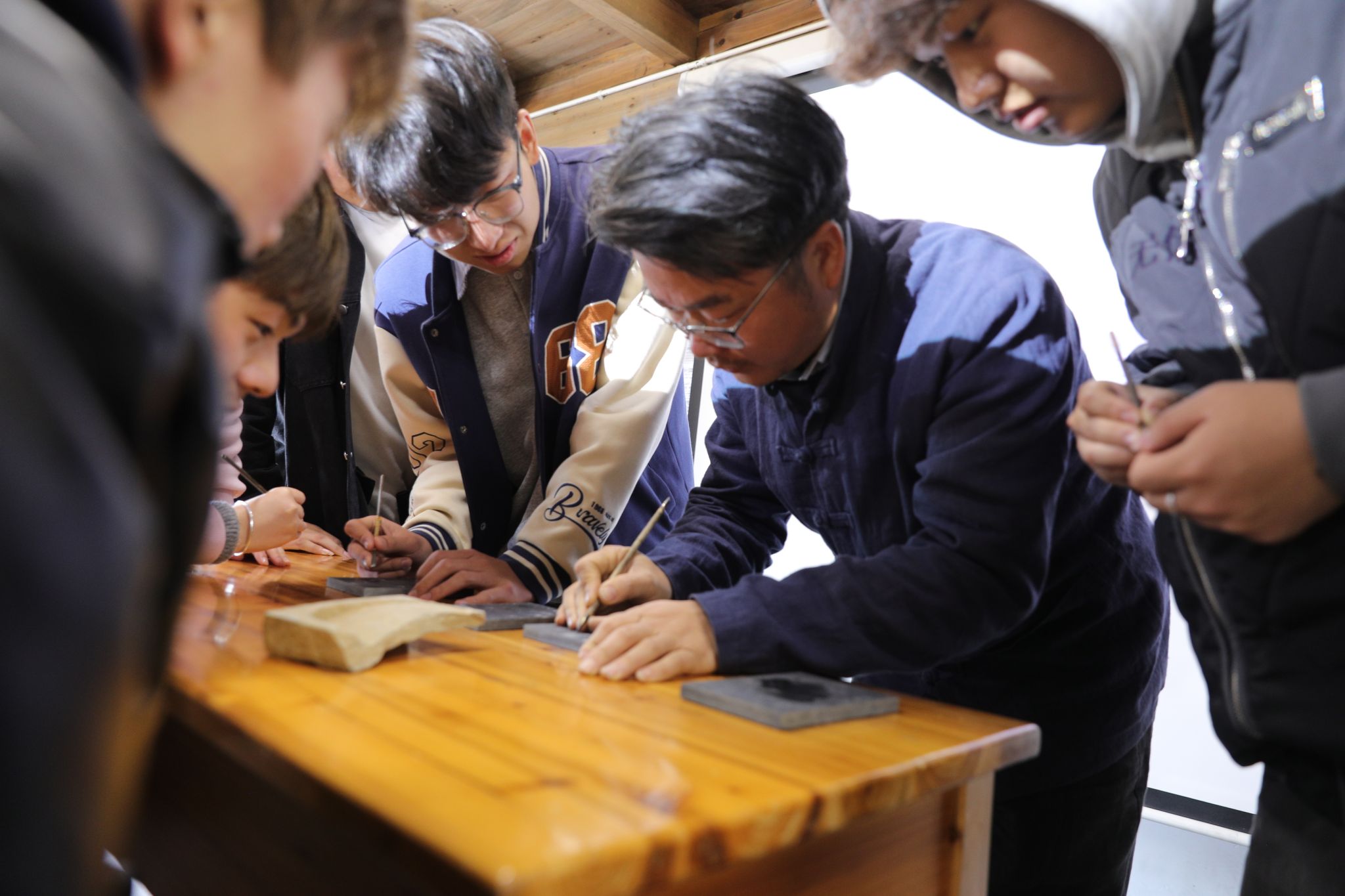 在讲座过程中,胡慧君不仅停留在理论讲解,还亲自为同学们进行了歙砚雕刻技法的展示。他拿起雕刻工具,在一块歙砚石材上熟练地操作起来,一边雕刻一边讲解每一个步骤的要点和技巧,让同学们直观地感受到歙砚雕刻的精妙之处。随后,胡慧君还邀请同学们亲自上手实践,手把手地指导他们如何把握雕刻力度、如何处理细节。同学们在胡慧君的指导下,小心翼翼地尝试着,虽然只是初窥门径,但这种亲身实践的经历让他们对歙砚雕刻技艺有了更深刻的理解,也更加感受到非遗文化的魅力与传承的重要性。