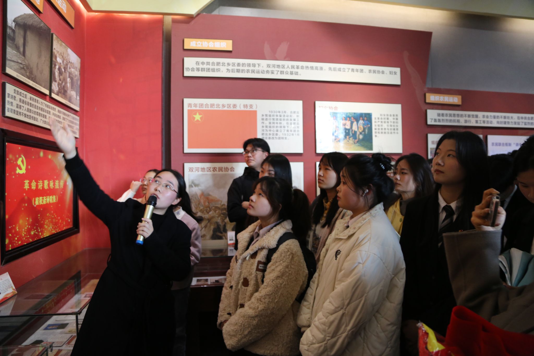 重温革命征程,致敬奋斗史诗。活动当天,师生们在讲解员的带领下有序参观纪念馆。通过珍贵的历史文物、生动的图文展板和影像资料,大家深入了解了中共合肥北乡支部作为合肥地区首个党组织的光辉历程,体会到了革命先烈在艰苦岁月中坚守信仰、英勇斗争的崇高精神,更深刻地感受到作为新时代青年团员的责任与使命。在“青春志愿行”环节,各二级学院学生代表通过志愿服务故事分享、雷锋日记诵读等形式,探讨新时代青年如何践行雷锋精神。