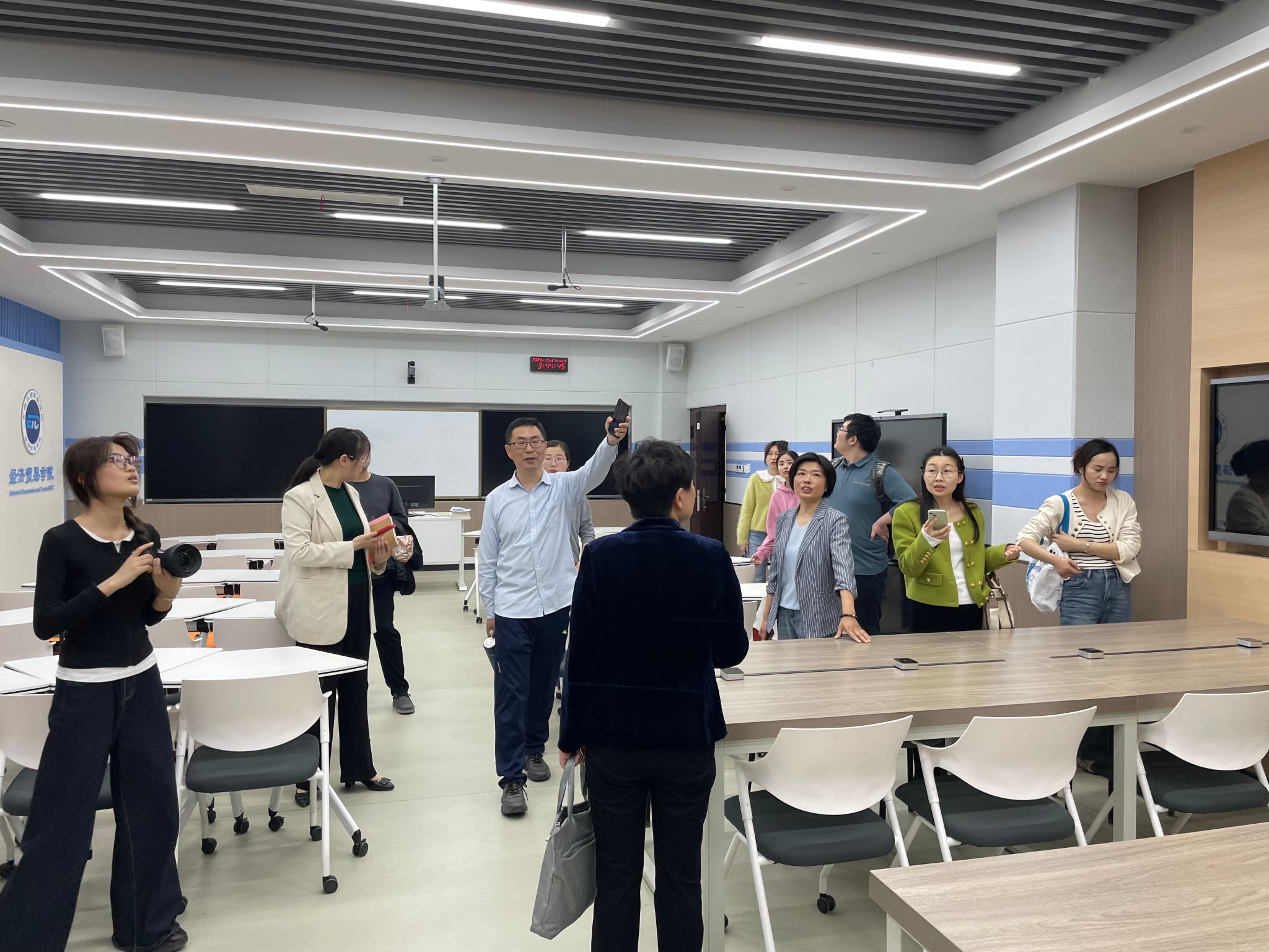 会后,李荣富一行参观了经济贸易学院、管理学院的专业实训室,两校的教研室主任、专业负责人、骨干教师之间进行了热烈的交流。
