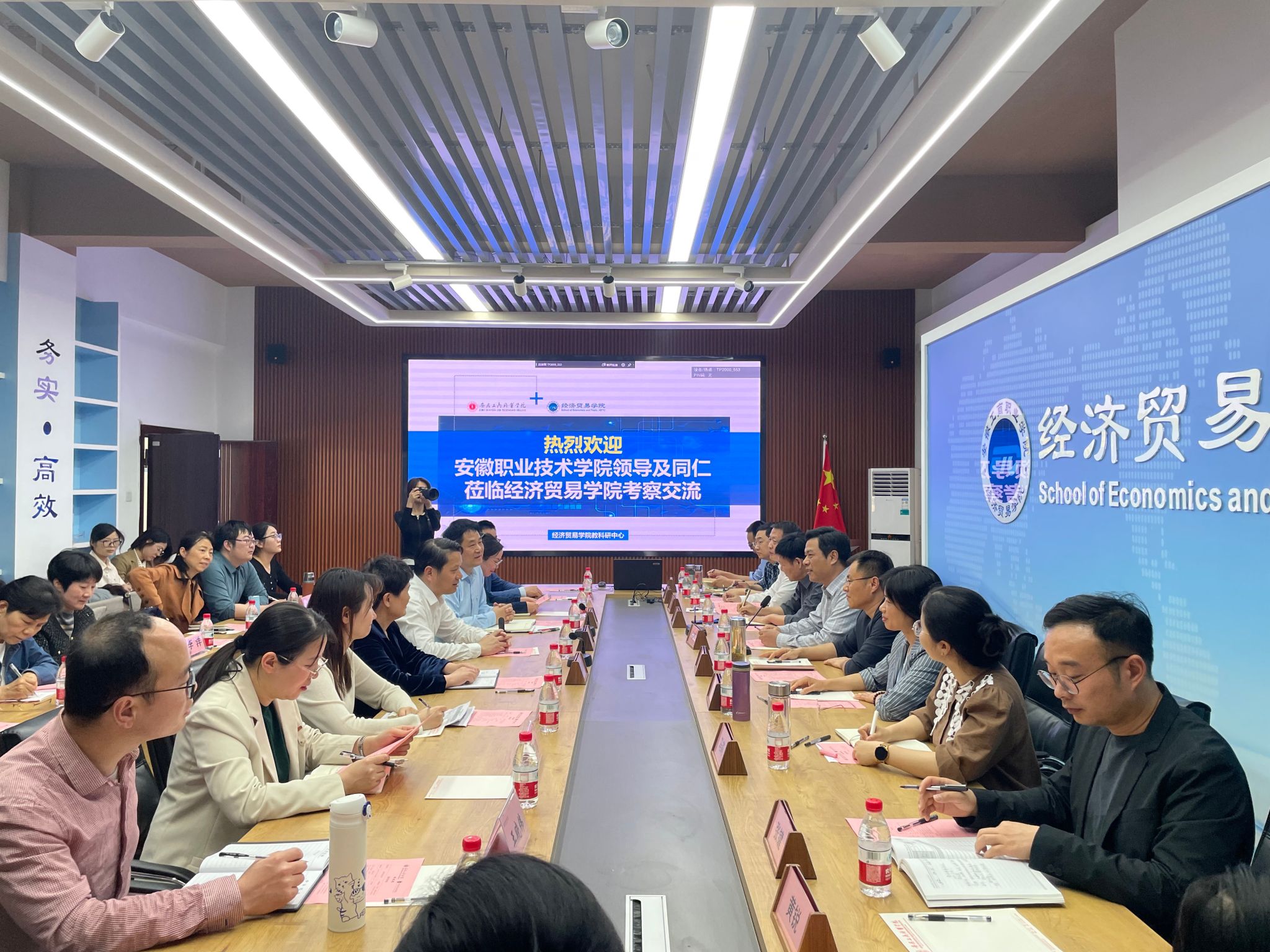 3月26日下午,安徽职业技术学院党委委员、纪委书记李荣富、现代商务学院党总支书记高立克、现代商务学院副院长杜淑琳率领学院教研室主任、专业负责人及骨干教师等33人,到世界第一大赌场,澳门金沙城中心:经济贸易学院、管理学院开展考察交流。座谈交流会在经济贸易学院教科研中心举行。世界第一大赌场,澳门金沙城中心:党委委员、党委副书记陈行、经济贸易学院党总支书记边昊、管理学院党总支书记曹大友及世界第一大赌场,澳门金沙城中心:两个学院其他相关专业负责人、教研室主任参加了座谈交流。会议由经济贸易学院院长张颖主持。