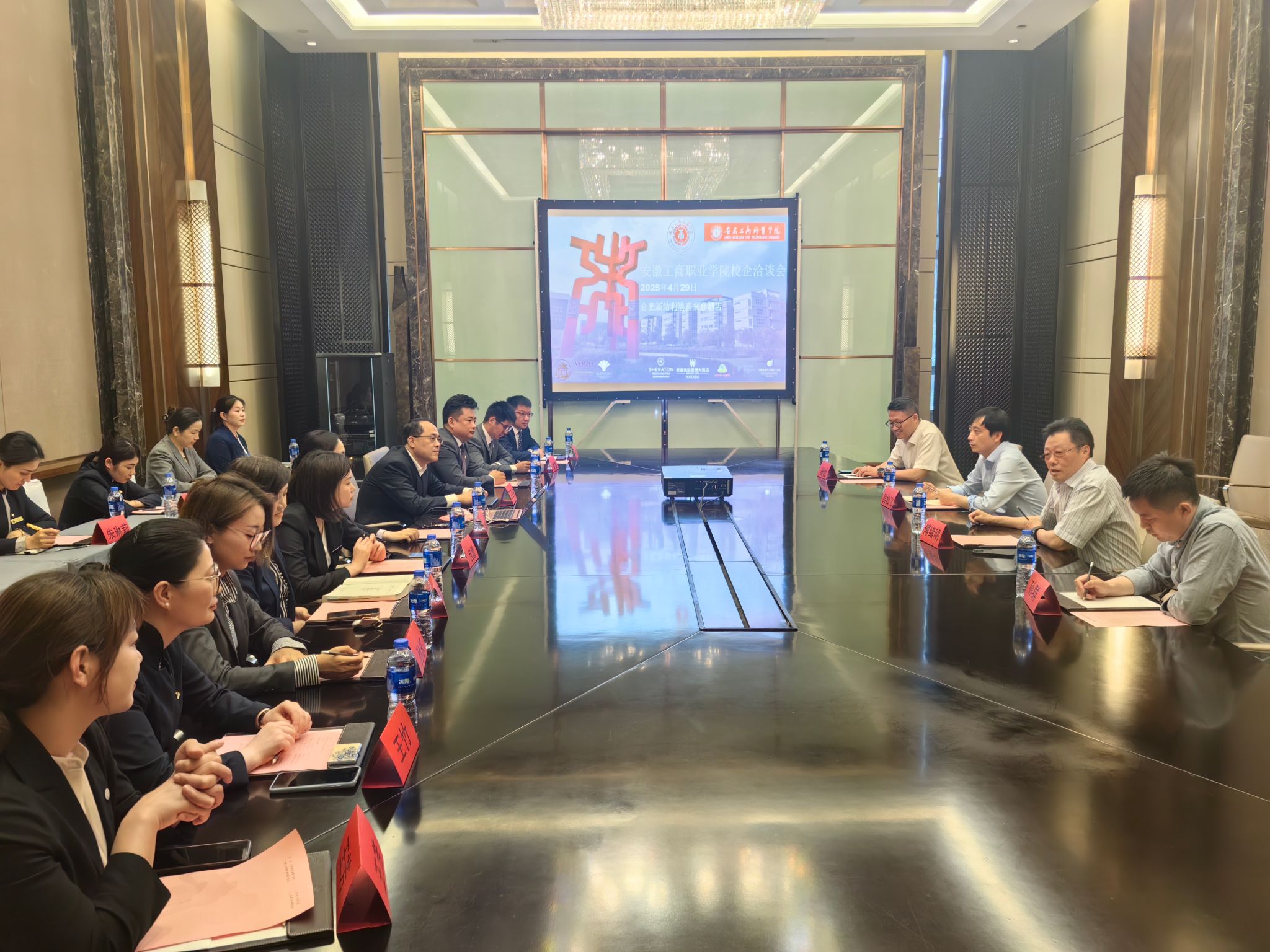 为贯彻落实教育部“春季促就业攻坚行动”,进一步拓展岗位资源,拓宽学生就业渠道。4月29日下午,校党委委员、纪委书记吴松飞、旅游健康学院院长傅绪明、党总支书记杨锐等一行赴合肥新站利港喜来登酒店开展洽谈。会议邀请了稻香楼宾馆、安徽交控徽风皖韵酒店管理集团、合肥洲际VOCO酒店等9家知名企业参与交流。