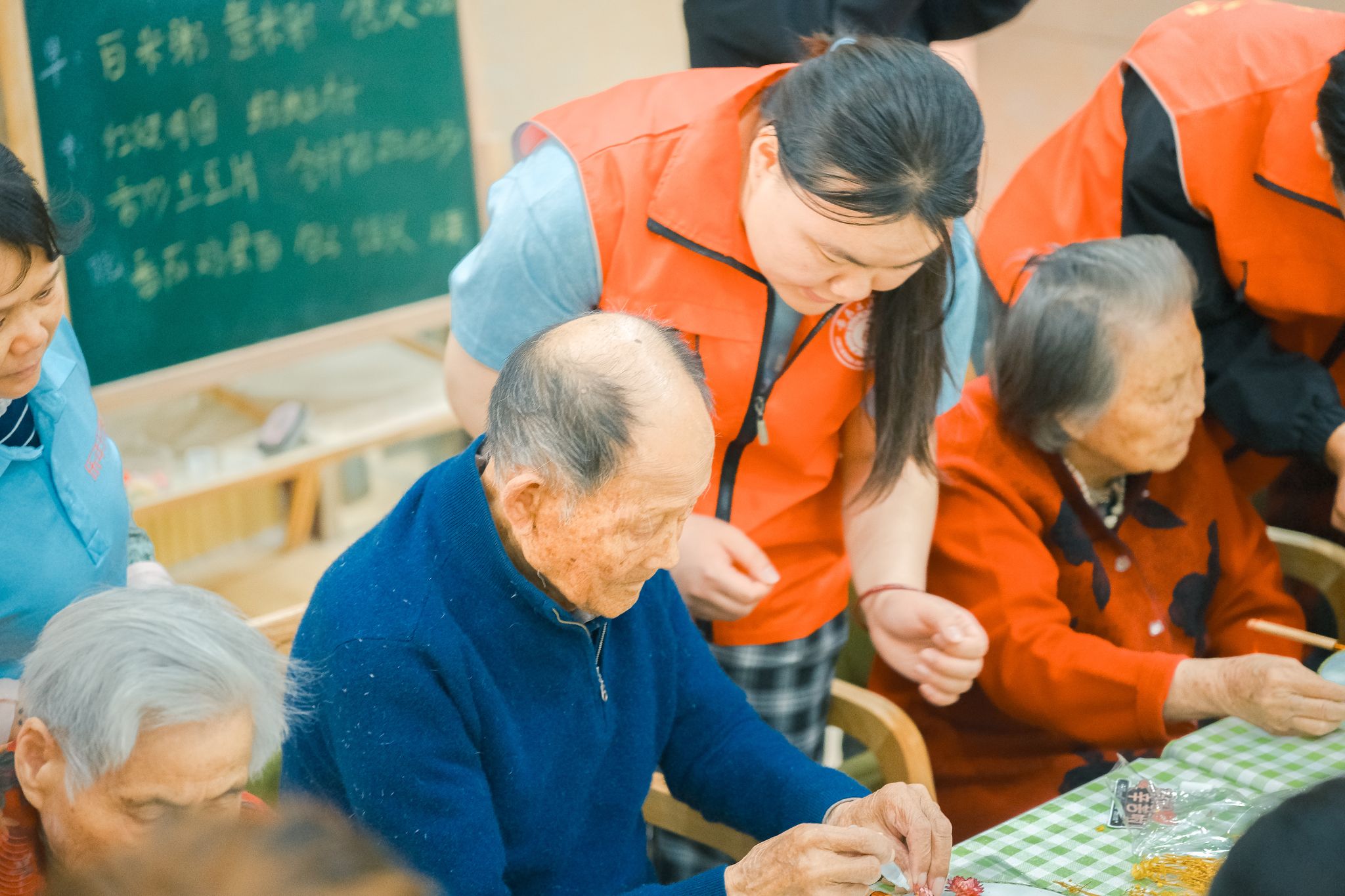 活动伊始,志愿者们与老人们围坐一堂,在温馨的氛围中拉开序幕。“在那遥远的小山村,小呀小山村……”一首《妈妈的吻》在活动室内缓缓流淌。志愿者们用真挚的歌声唱出对母亲的思念与感恩,许多老人眼含热泪轻声跟唱,仿佛随着旋律回到了青春岁月。随后,《茉莉花》《南泥湾》等经典老歌接连唱响,现场掌声不断,笑声与歌声交织成节日的暖流。
