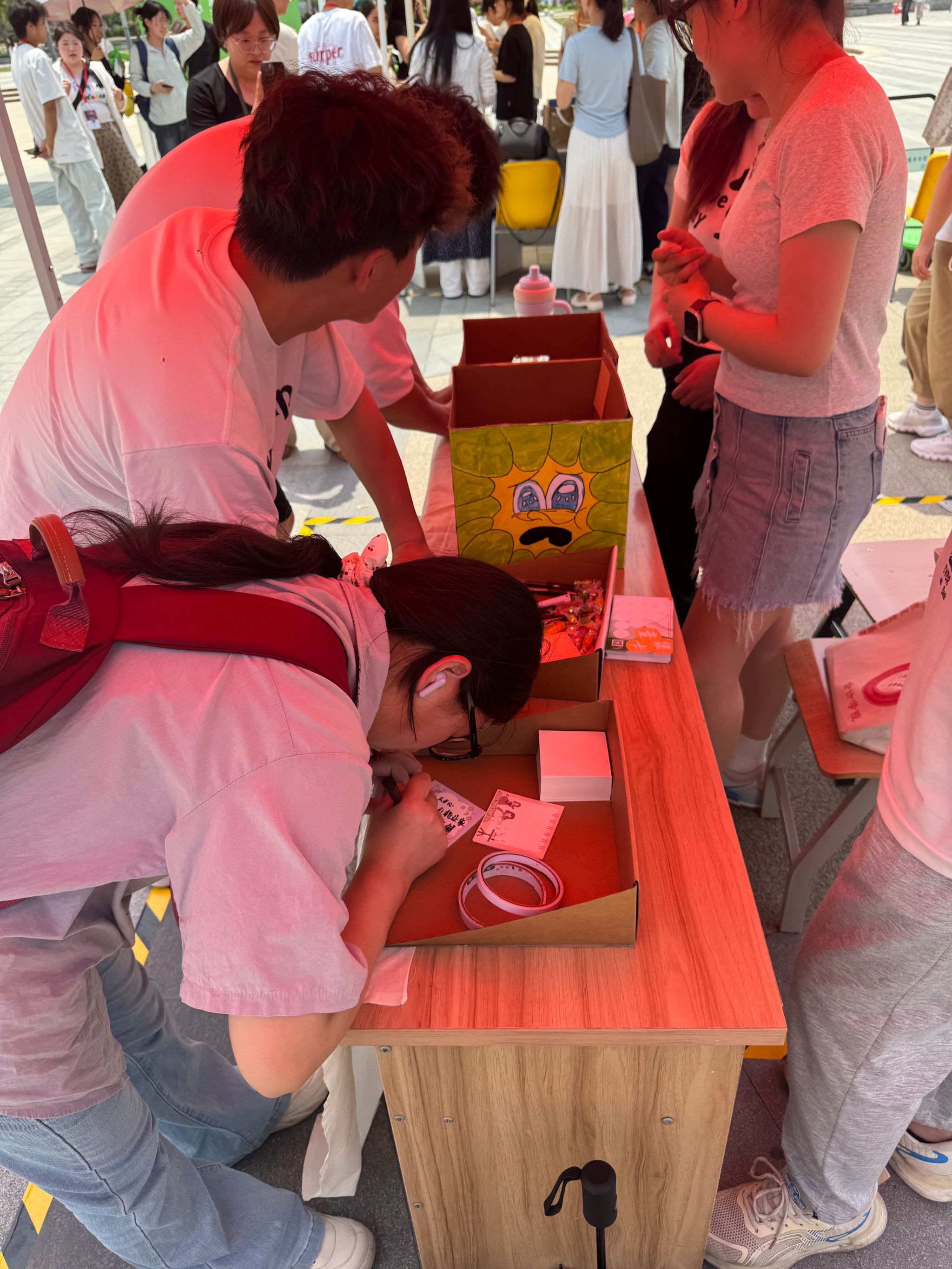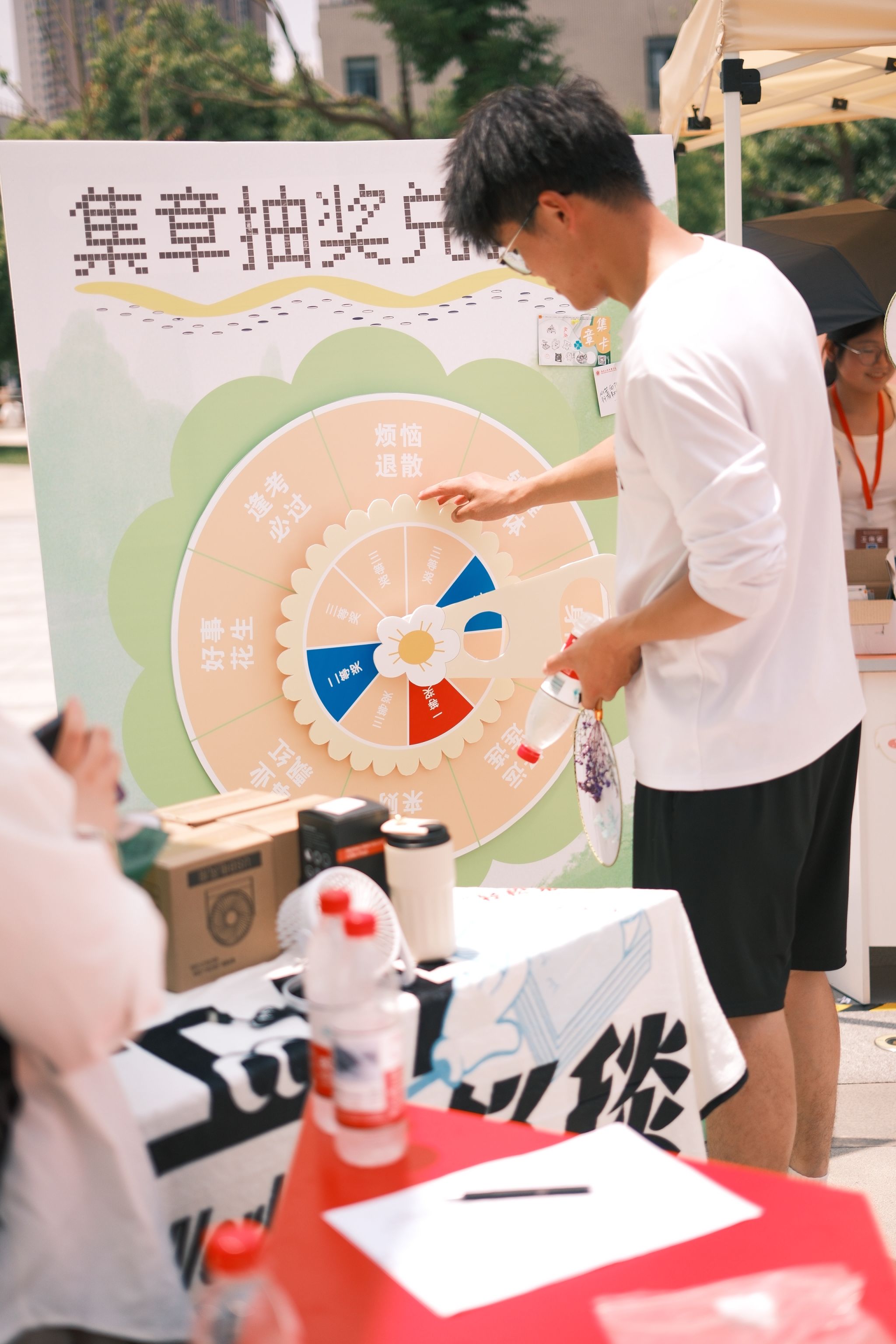 活动中,身着可爱装扮的 “神秘任务官” 穿梭于三商广场,随机发布“拥抱陌生人”等趣味挑战,带来意外惊喜。活动期间,共发放500余张集章手卡,超300人成功集满 9 枚印章参与抽奖,现场始终洋溢着欢声笑语。