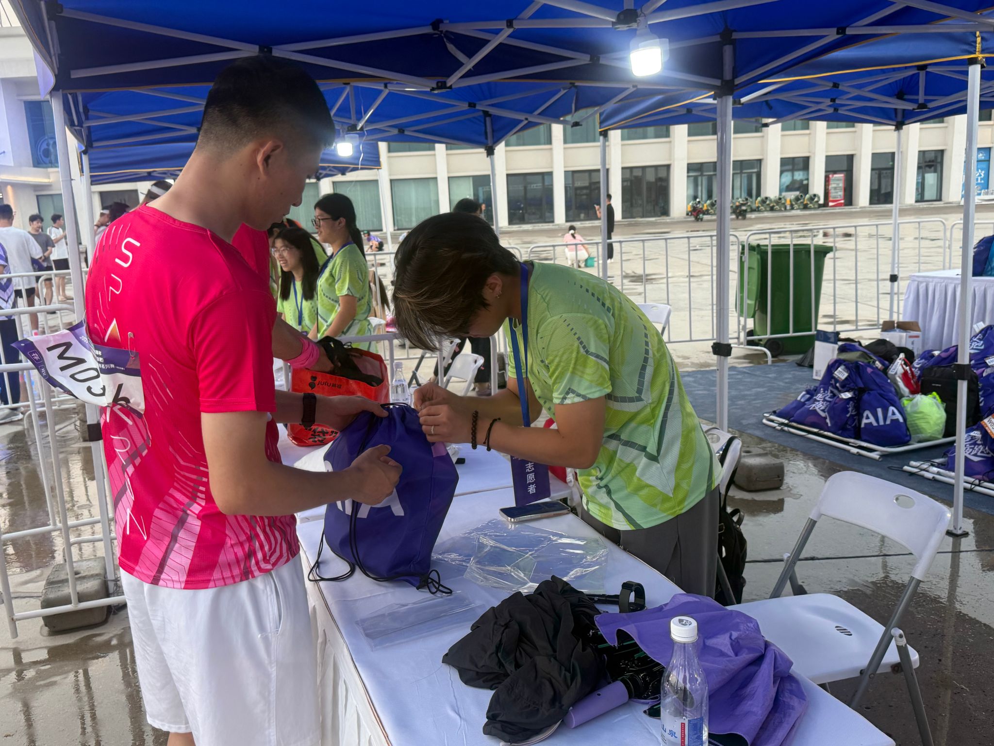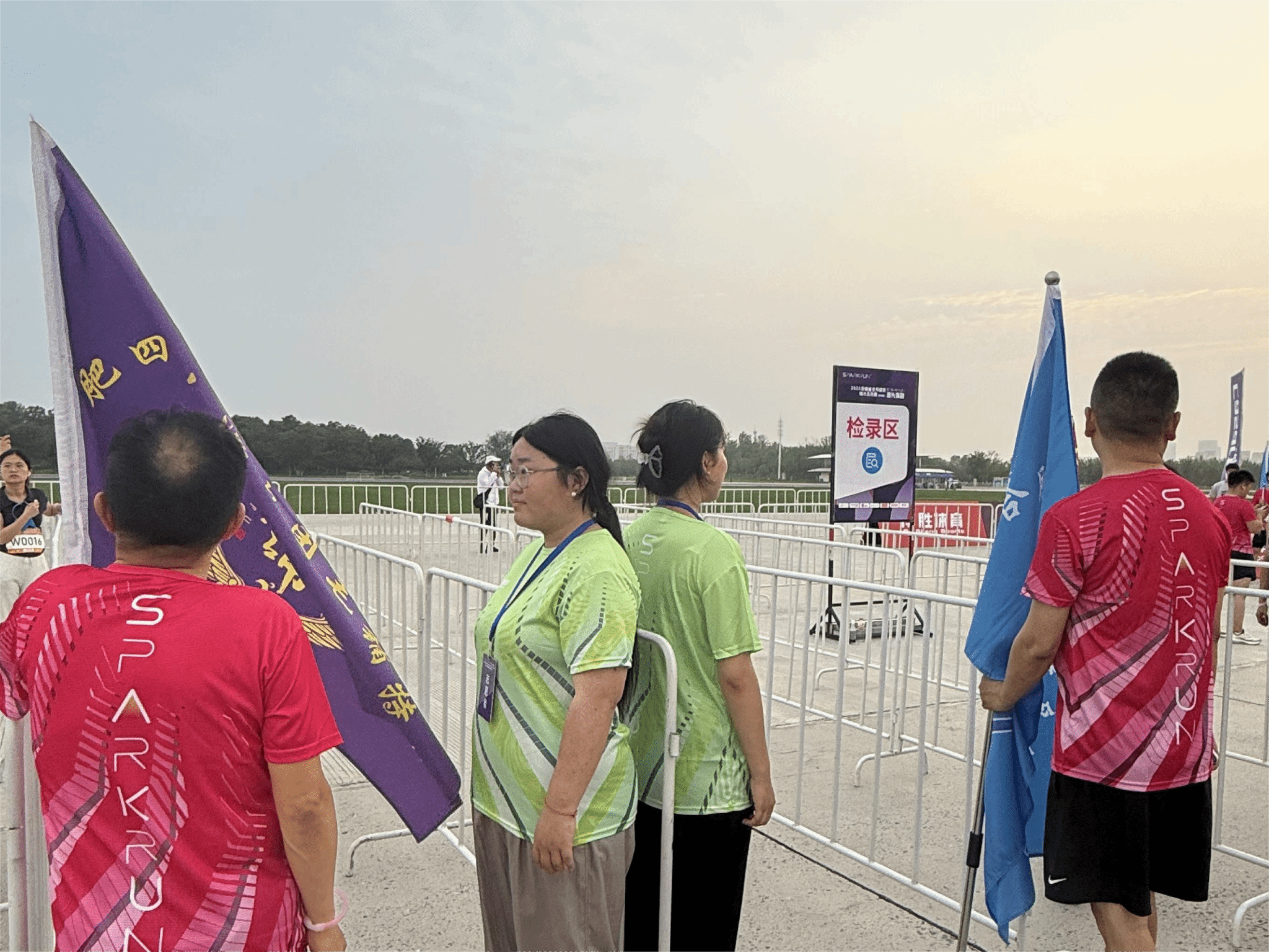 活动当天,志愿者们如精密齿轮般分布在赛事运转的关键环节:领物区高效、准确地分发参赛物资,存取区细心保管选手物品;完赛奖牌发放区见证跑者荣光,补给站及时传递能量关怀;检录区确保秩序井然,赛道检查区守护奔跑安全。此外,志愿者们还承担了场地引导、秩序维护、信息咨询、应急保障等多项工作。从晨曦微露的赛前准备,到华灯璀璨的赛后收尾,他们始终坚守岗位,不畏辛劳。他们以真诚的微笑和严谨的态度,织就了一张覆盖赛事全程的“服务网”,成为夜色中最值得信赖的贴心守护者。