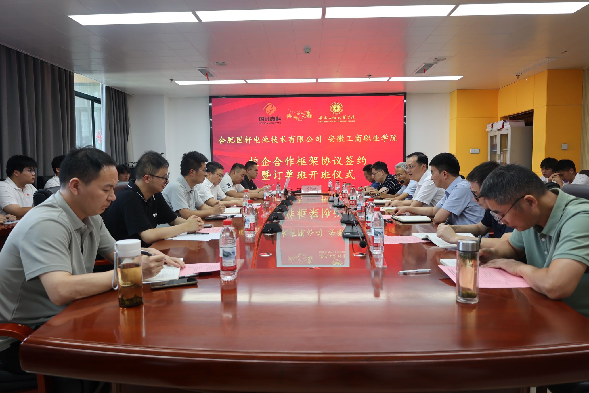 在校企双方领导和师生的共同见证下,安徽工商职业学院与合肥国轩电池技术有限公司正式签署了“校企合作订单班”框架协议书,标志着双方在产教融合、协同育人方面迈入新阶段。