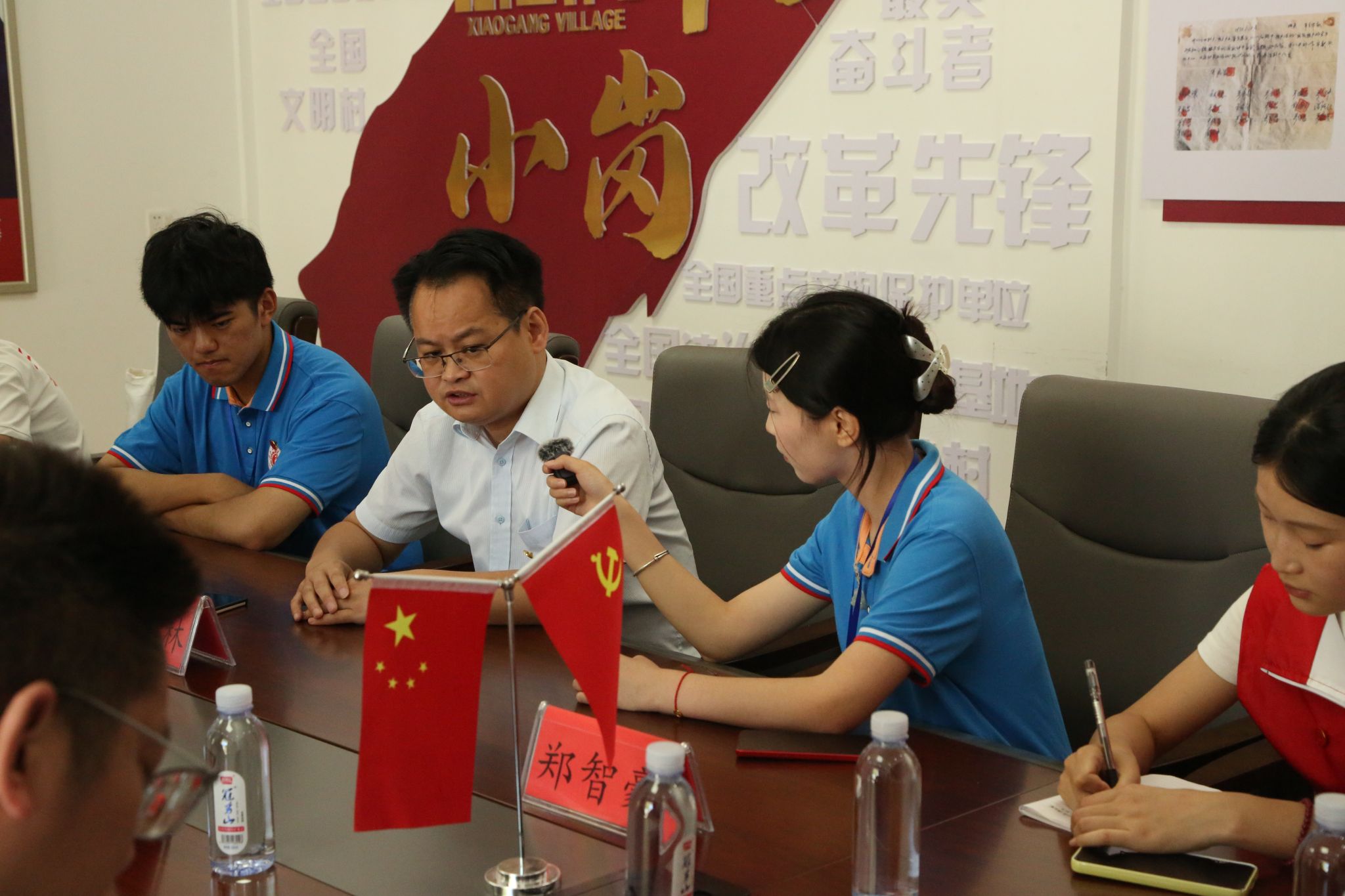 深度对话:碰撞智慧火花。在自由实践期间,团队专程来到小岗村博士工作站,与雷松林博士等专家学者进行了深入座谈,围绕小岗村经济发展模式创新、人才引进与培养机制等议题展开了热烈讨论,为小岗村的未来发展贡献了青年学子的思考与建议。队员们还采访了小岗村党委办公室主任李文其,来到大包干带头人严金昌家的农家乐“金昌食府”,积极走访调研附近的村民、商户等,倾听他们的心声,了解最真实的乡村发展现状与需求,为实践调研收集了宝贵的第一手资料。