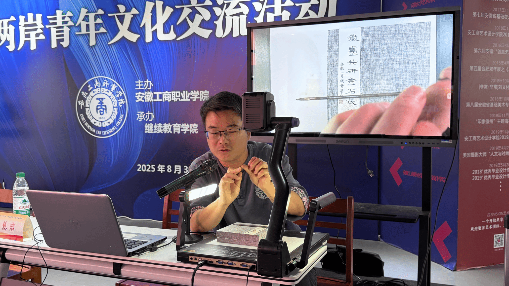 仪式后,国家级非遗项目“歙砚制作技艺”省级代表性传承人、安徽省工艺美术大师胡慧君为营员们带来了一场生动的歙砚文化讲座与雕刻体验课,两岸青年学生亲手执刀刻砚,于方寸之间体会“匠心独运”的徽工之巧,在一刀一划中感受中华优秀传统文化的博大精深与独特魅力,后续的徽州茶点品鉴与校园参访,进一步加深了台湾青年对安徽地域文化和学院办学情况的了解。
