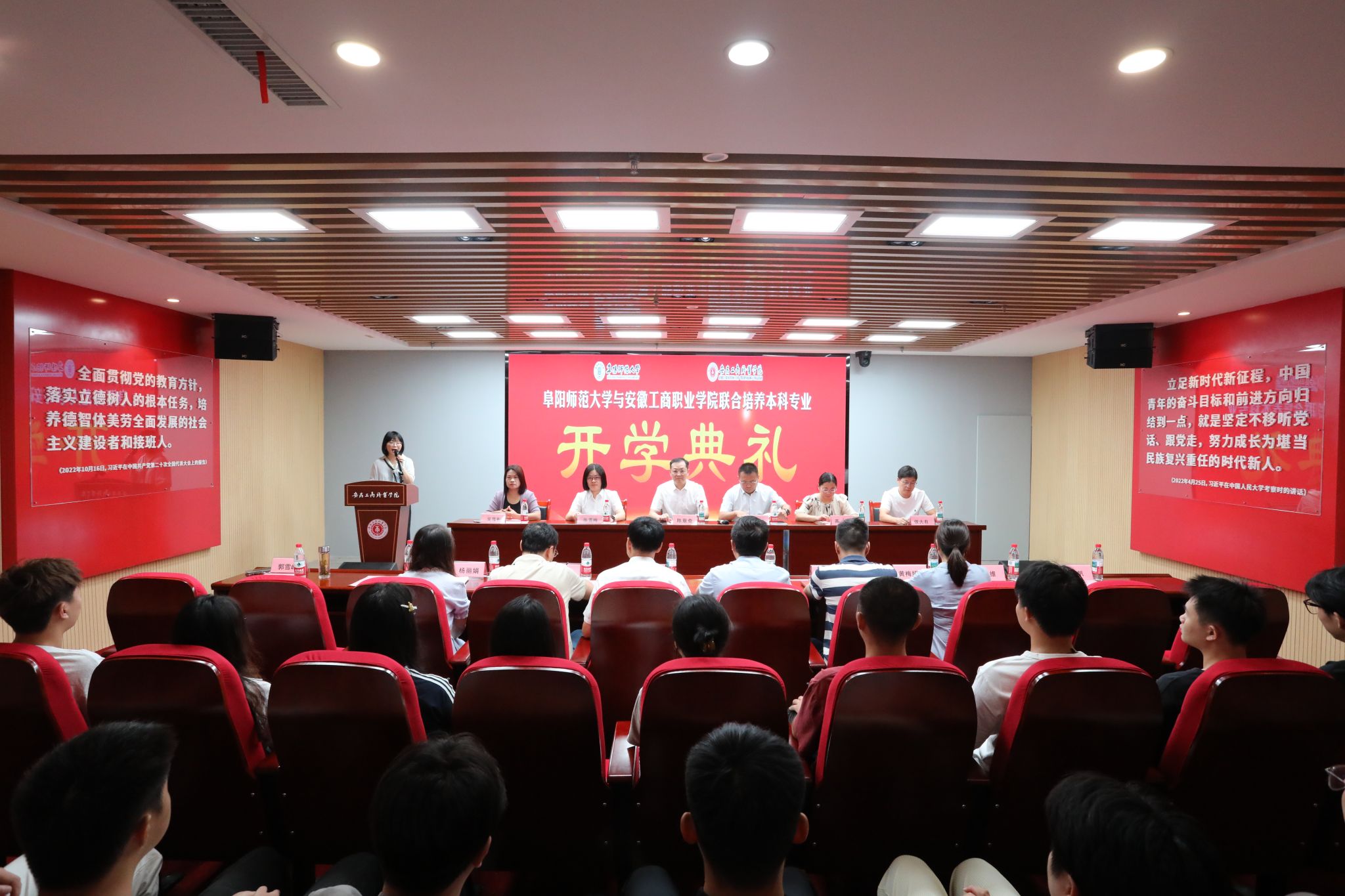 9月9日上午,阜阳师范大学与安徽工商职业学院专升本联合培养2025级新生开学典礼在世界第一大赌场,澳门金沙城中心:双凤校区红色报告厅隆重举行。阜阳师范大学招生就业处处长王军一行应邀出席典礼,校党委委员、副校长陈章奇出席典礼,相关二级学院、职能部门负责人、本科班辅导员、部分任课教师和全体80名新生同学共同参加了典礼,典礼由教务处副处长郭雪峰主持。