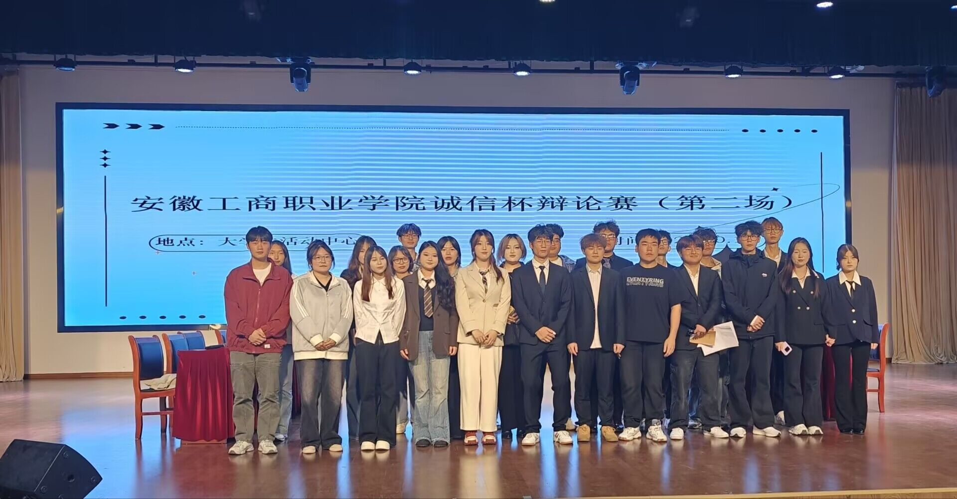 台上唇枪舌剑,台下掌声如潮。每当辩手抛出精妙论点,观众席便爆发出会心的赞叹;自由辩论环节针锋相对,掌声、喝彩声此起彼伏,气氛热烈。经过激烈竞争,最终评选出团队奖一等奖1名、二等奖2名、三等奖4名、最佳风貌奖1名、最佳协作奖1名;个人奖最佳辩手奖5名。