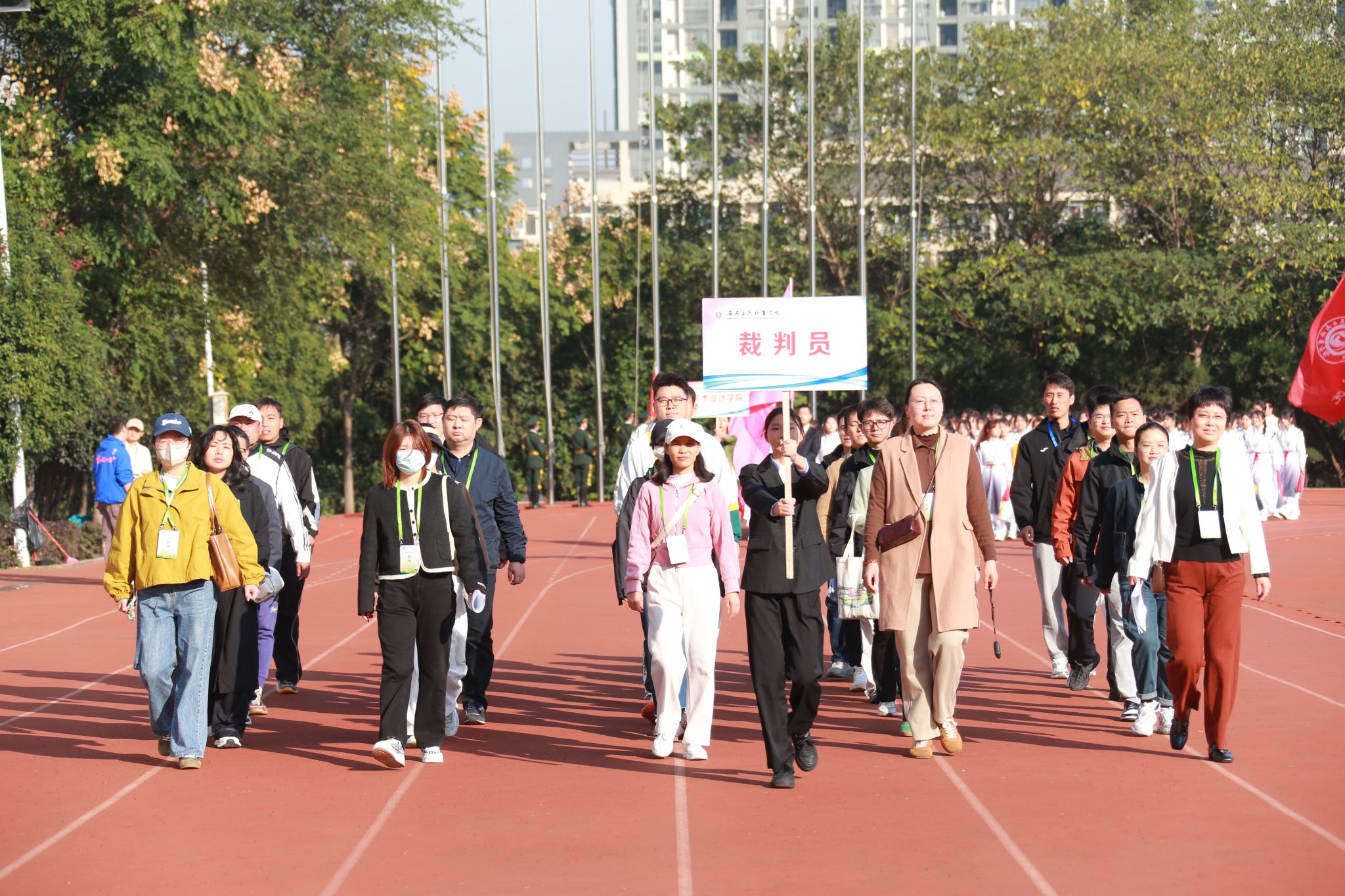 党委副书记陈行致开幕辞。他首先代表学校向运动会的胜利召开表示热烈祝贺,并向精心筹备赛事的全体工作人员和刻苦训练的运动员们表示感谢。陈行指出,一年一度的田径运动会是学校落实“五育并举”的重要载体,更是激励师生强健体魄、锤炼意志、凝聚力量的生动实践。他希望全体运动员弘扬“更快、更高、更强——更团结”的奥林匹克精神,让拼搏精神照亮学业征程,将规则意识融入职业血脉,用团队力量书写精彩人生。希望裁判员和工作人员恪尽职守、公正执裁、热情服务,确保赛事平稳有序;希望观赛师生文明助阵、团结友爱,共同营造积极向上的赛场文化。